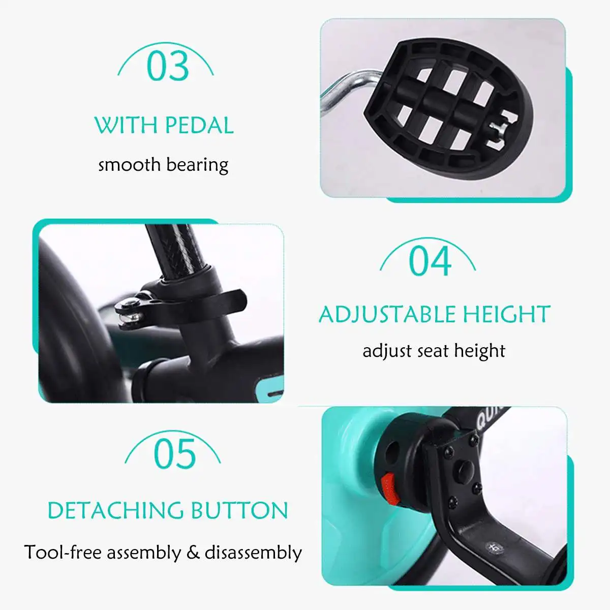 ◆ [Простота в использовании]: сборка и разборка без инструментов, только для установки руля, педалей и тренировочных колес. 3 части соответствуют 3 красным кнопкам, никаких инструментов не требуется, без хлопот, что позволяет избежать проблем, вызванных во время процесса установки.