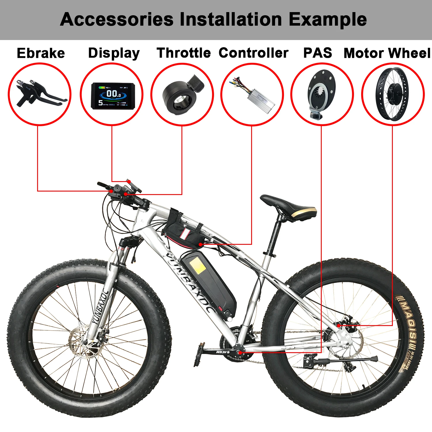 4.Полные аксессуары, поставляется со всеми необходимыми аксессуарами. Моторное колесо, контроллер, тормозной рычаг, дроссельная заслонка большого пальца, сумка контроллера, дисплей (опционально), датчик помощи педали.