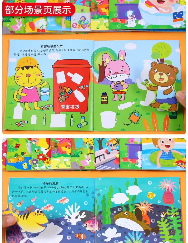 18 стикеров, книги От 3 до 6 лет, Детские левые и правые наклейки для мозга, развивающая игра для раннего образования, Kawaii, Детская обучающая игрушка