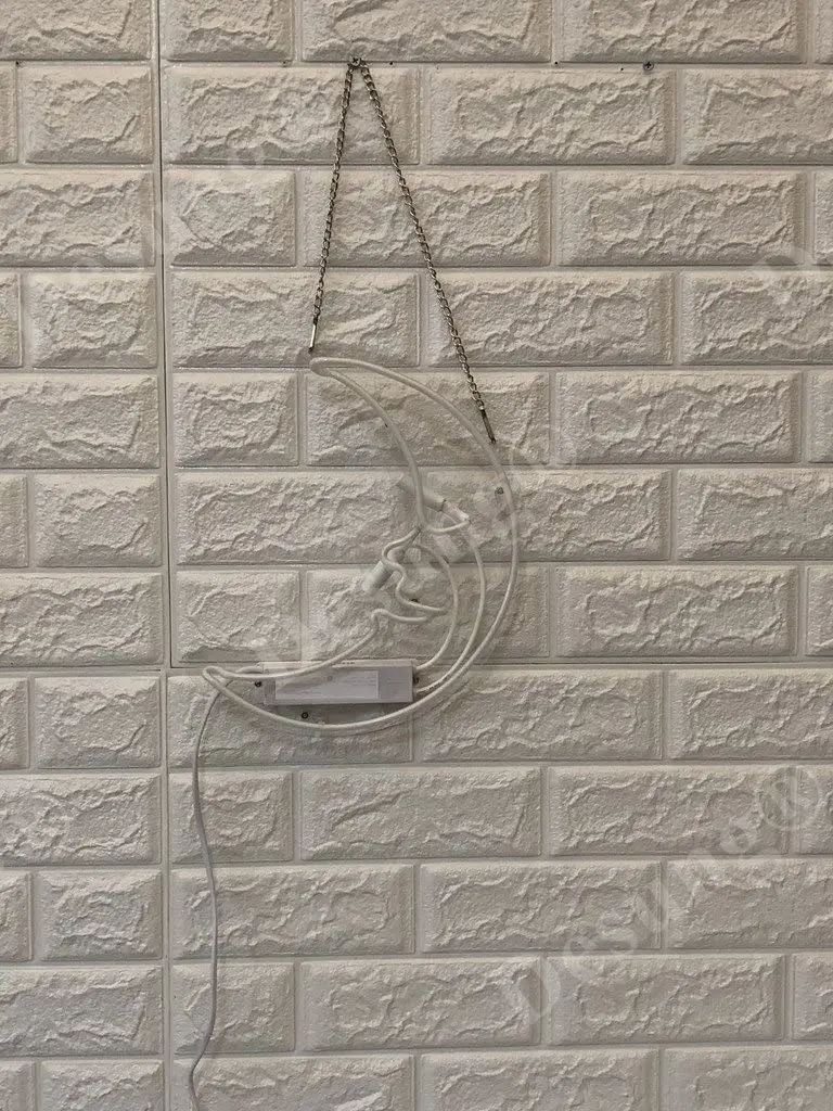 Неоновая вывеска крепится на акриловой задней стороне и может стоять или висеть на стене.