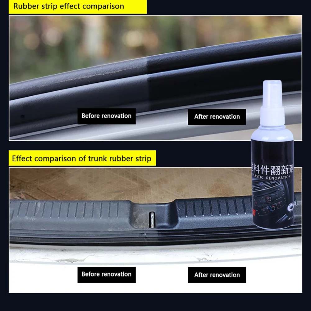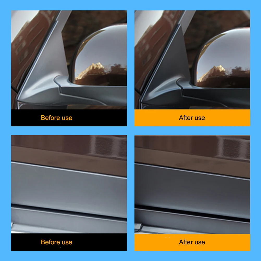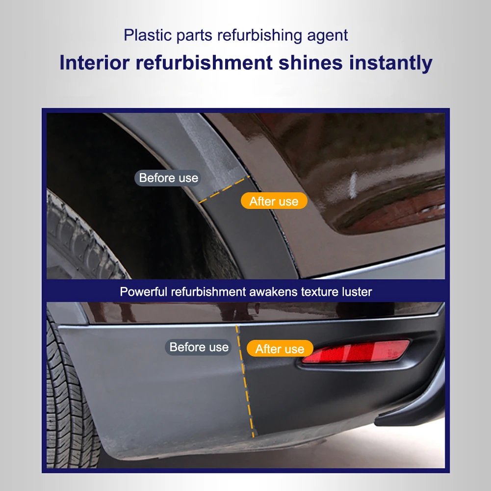 * Пластиковое решение для восстановления прост в использовании. Просто протрите его губкой на желаемой области, пока не достигнете желаемого черного цвета поверхности вашего автомобиля.