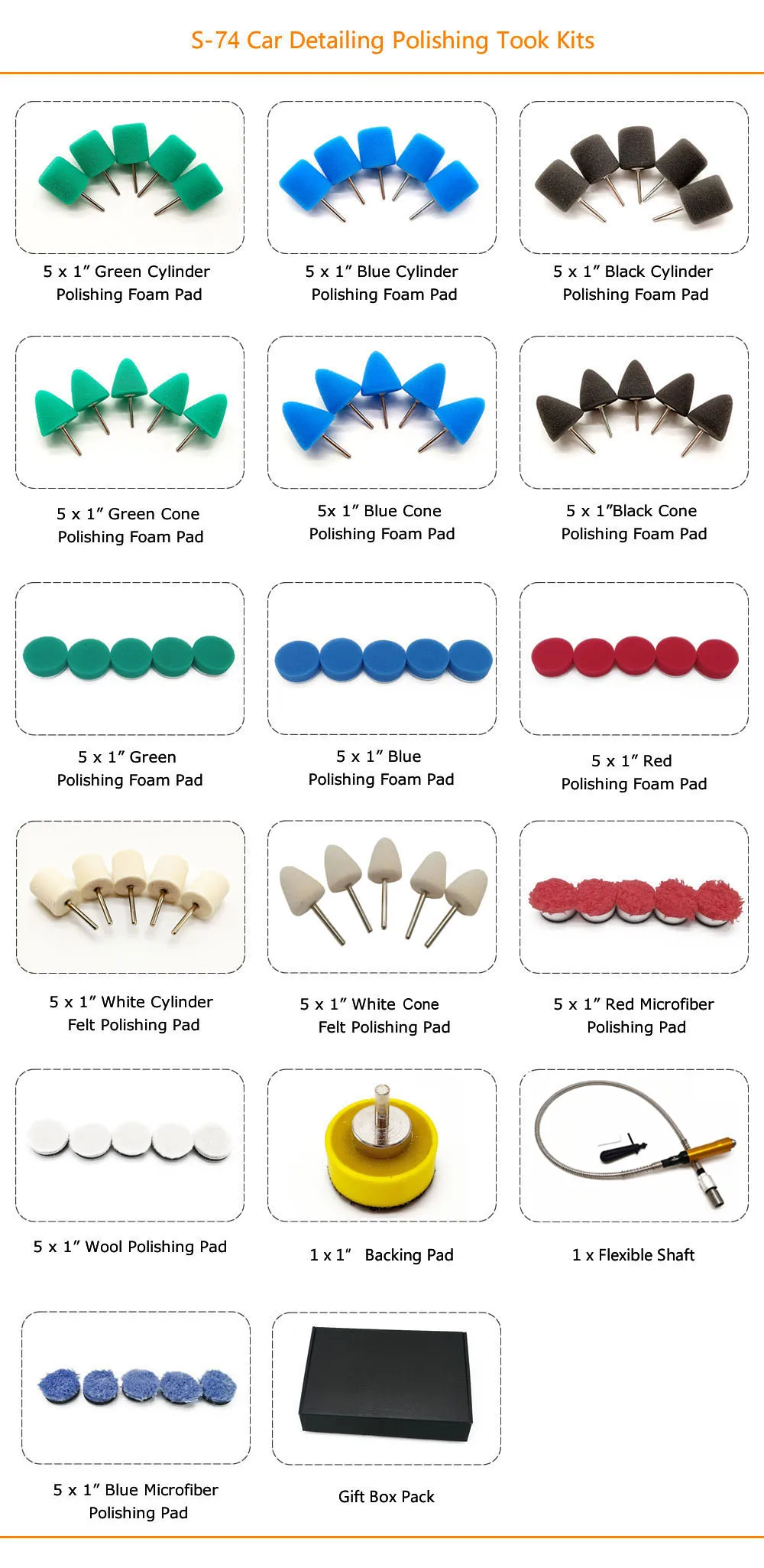[Функция]: мини-полировальная система HUTU может использоваться в таких областях, как автомобильные фары, противотуманные фары, тормозные огни, дверные ручки, эмблемы, поверхности из стекла с царапинами, внутренние консольные панели или небольшие области. Обеспечить высокое качество ухода за автомобилем опыта при работе на труднодоступных местах, где много полировщиков не могут сделать. И его можно использовать вместе с роторным полировщиком, электрической дрелью и Dremel.