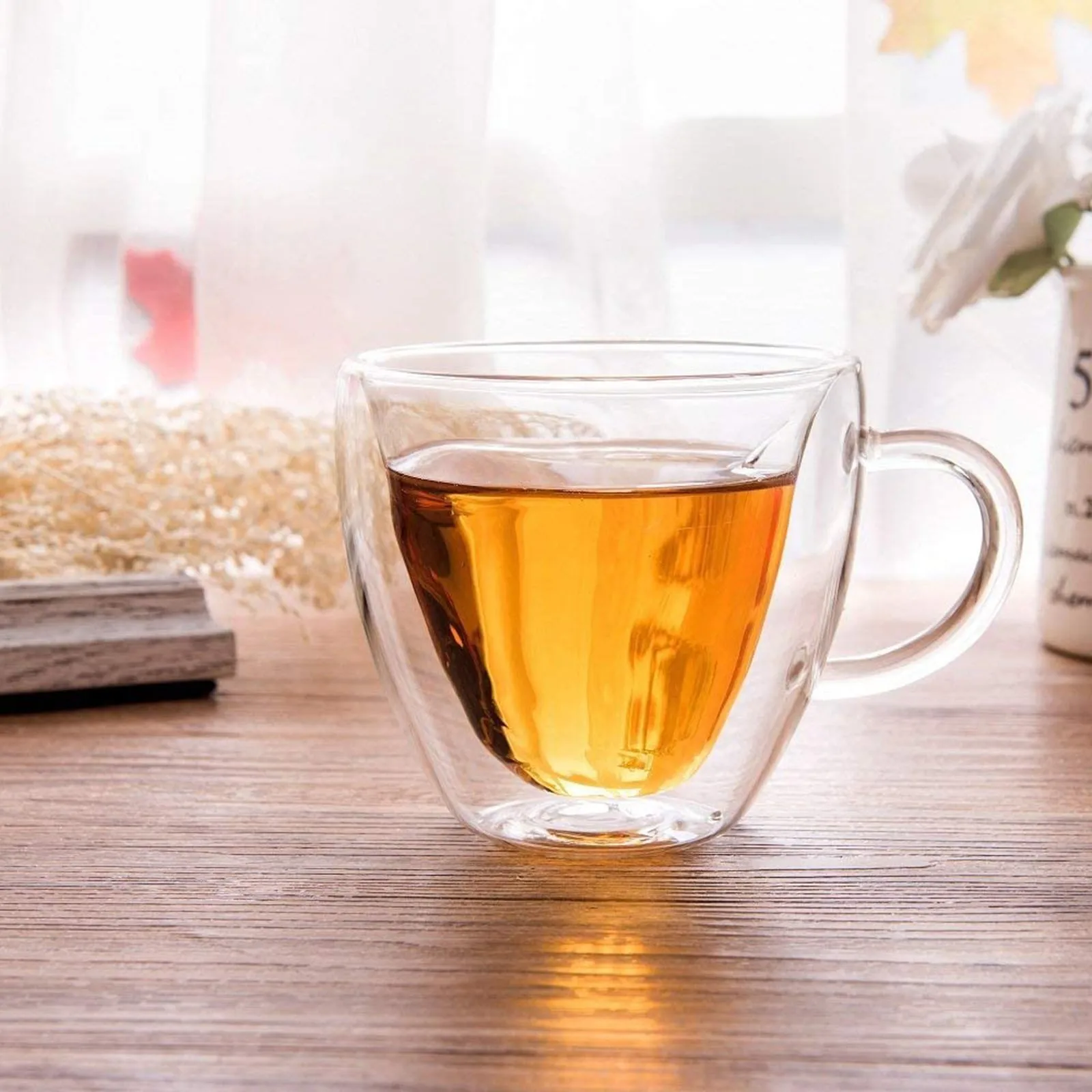 Изготовлен из жаропрочного и устойчивого к конденсату боросиликатного стекла, которое является более прочным и идеальным, чем обычное стекло, которое придает гладкую отделку и кристально чистый вид. Сохраняет жидкость горячей, сохраняя руки прохладными.