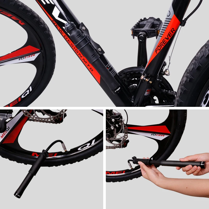 Super small & Convenient :The Bicycle Air Pump is smaller than one adult's palm makes it to fit in any of your pockets or backpacks. Can be attached to the bike frame under the water bottle cage with the mounting bracket .