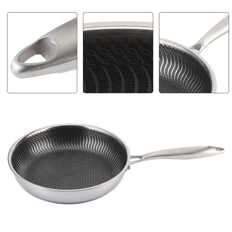 2. Антипригарная сковорода: Используйте поддерживающий эффект точек и точек, чтобы уменьшить прямой контакт между пищей и поверхностью сковороды для формирования эффекта газовой подвески, И добиться самостоятельного отключения антипригарного