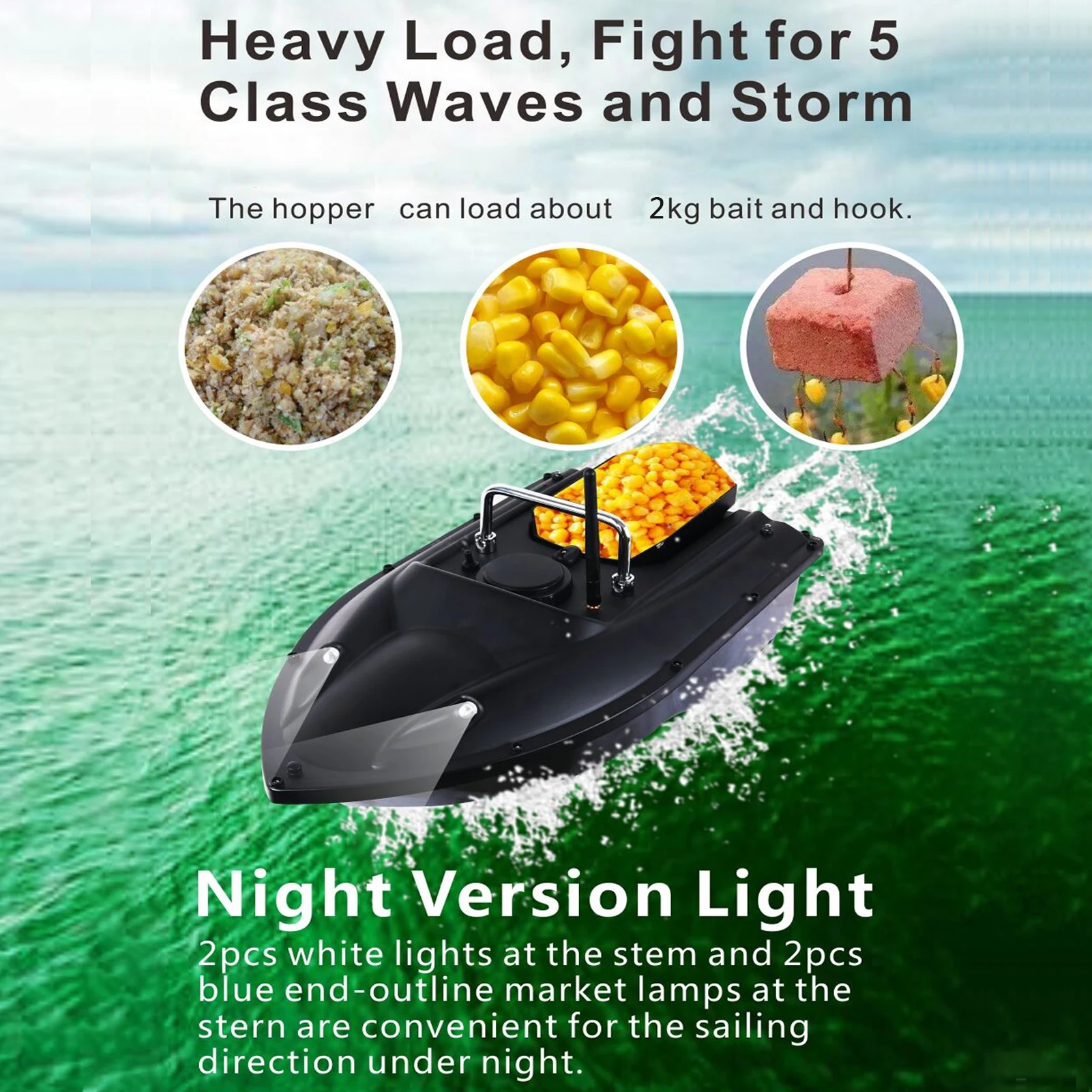 Мощный светильник: передний и задний двухцветные фонари расширяют визуальный диапазон в ночное время, что поможет вам легко судить о направлении плавания и обеспечить точность приманки.