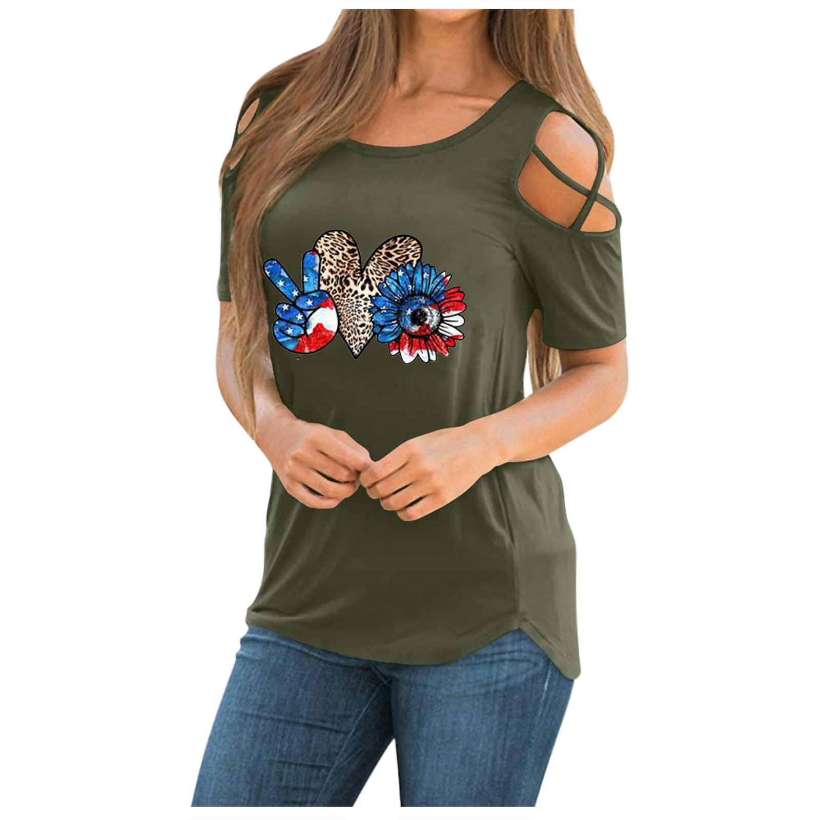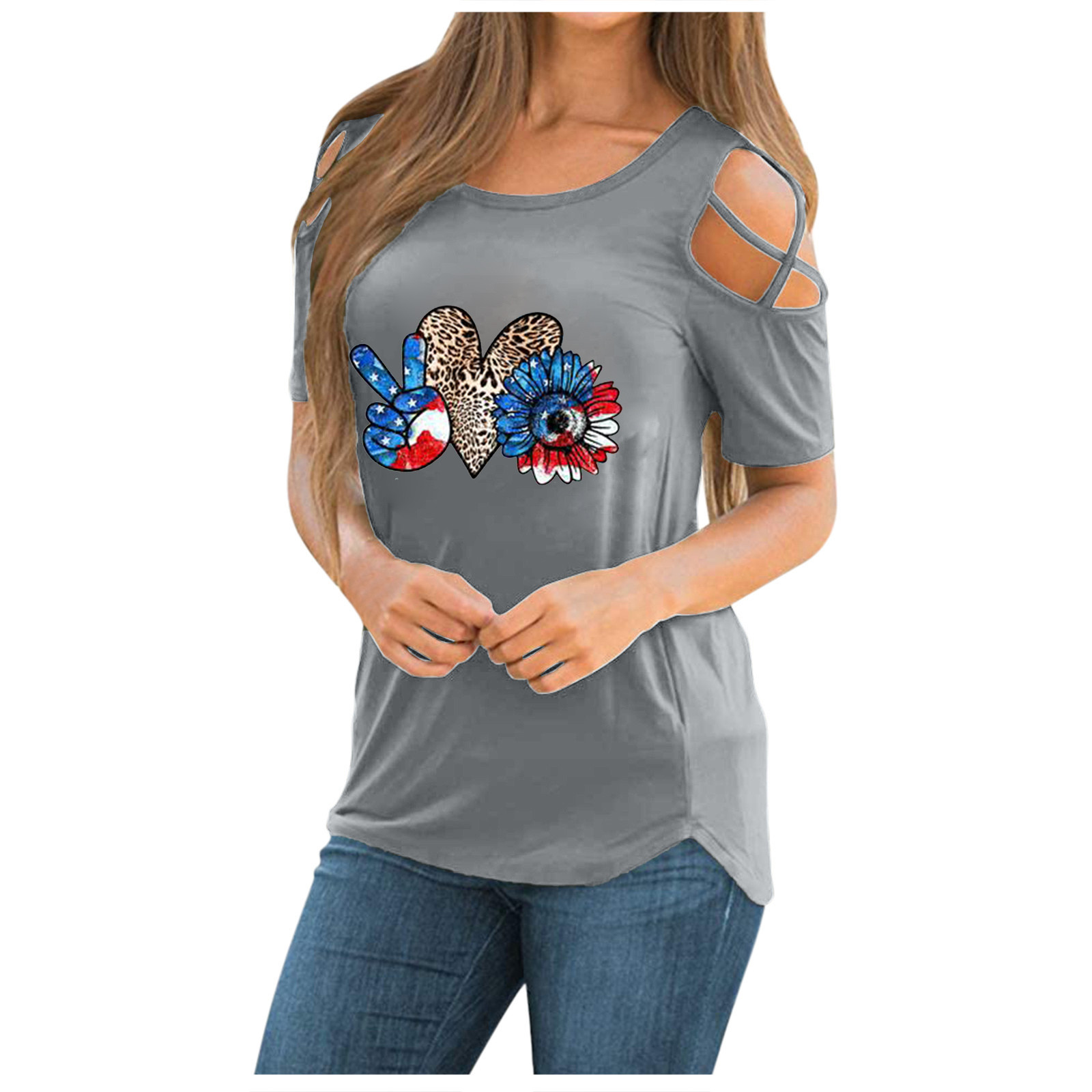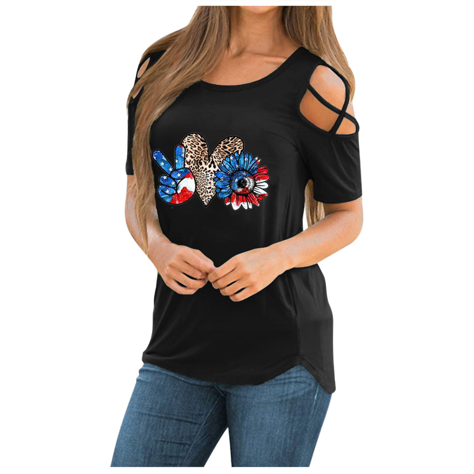 Женская модная повседневная футболка с принтом, короткий рукав, вырез-хомут, без бретелек, топы, блузка