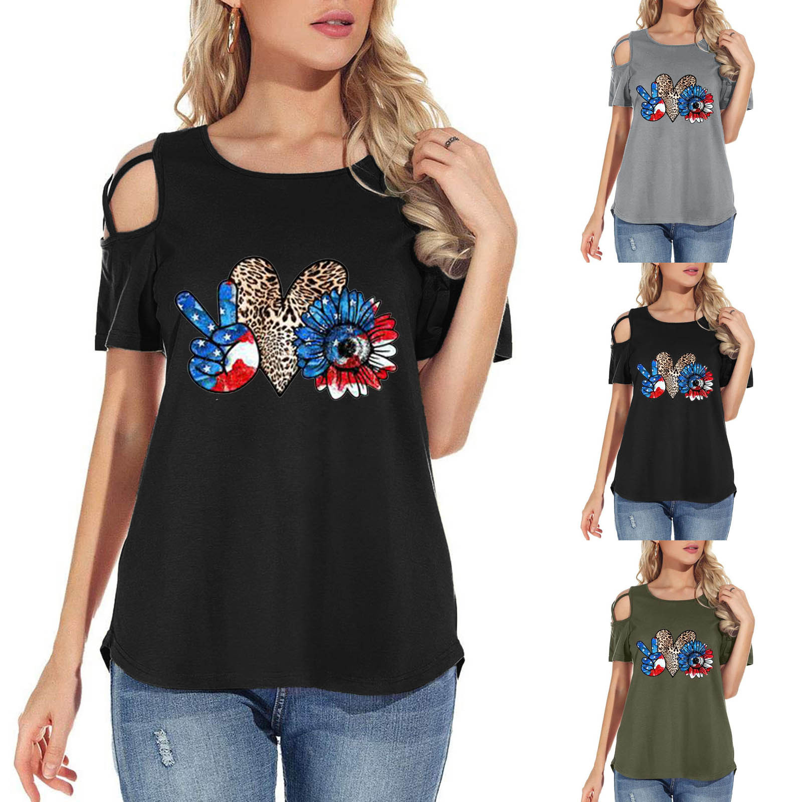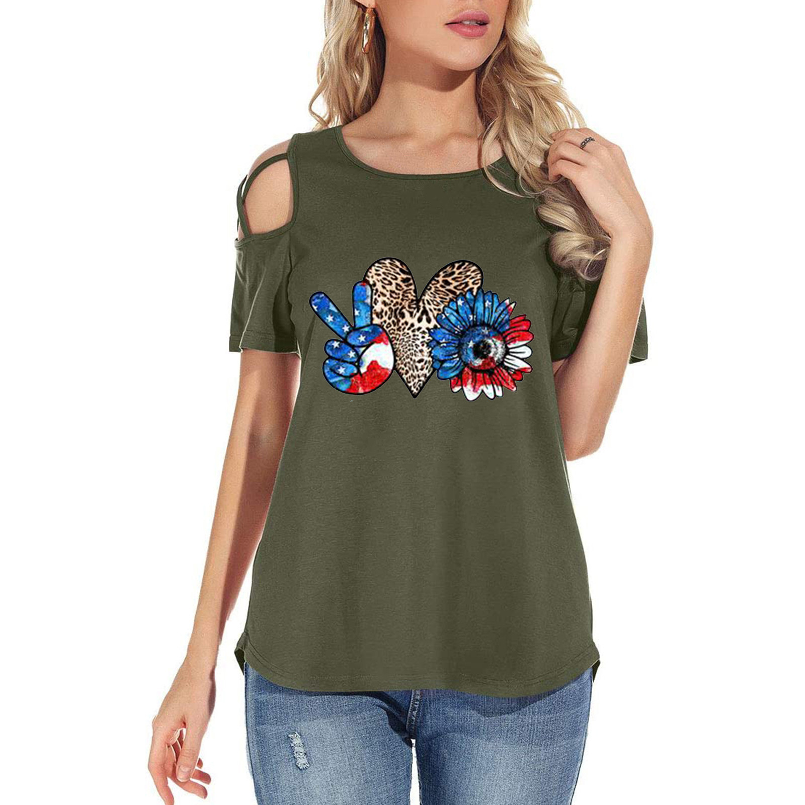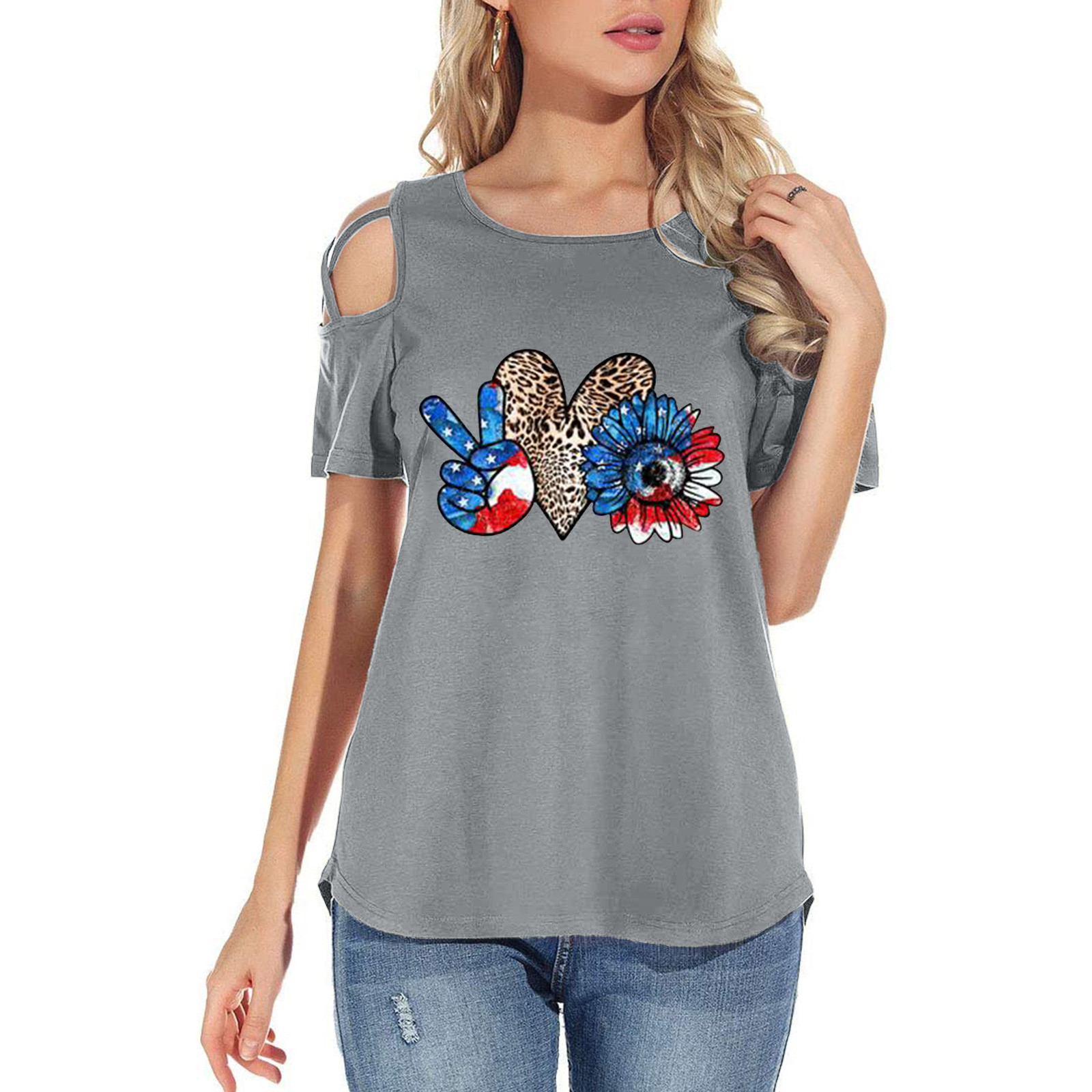 Женская модная повседневная футболка с принтом, короткий рукав, вырез-хомут, без бретелек, топы, блузка