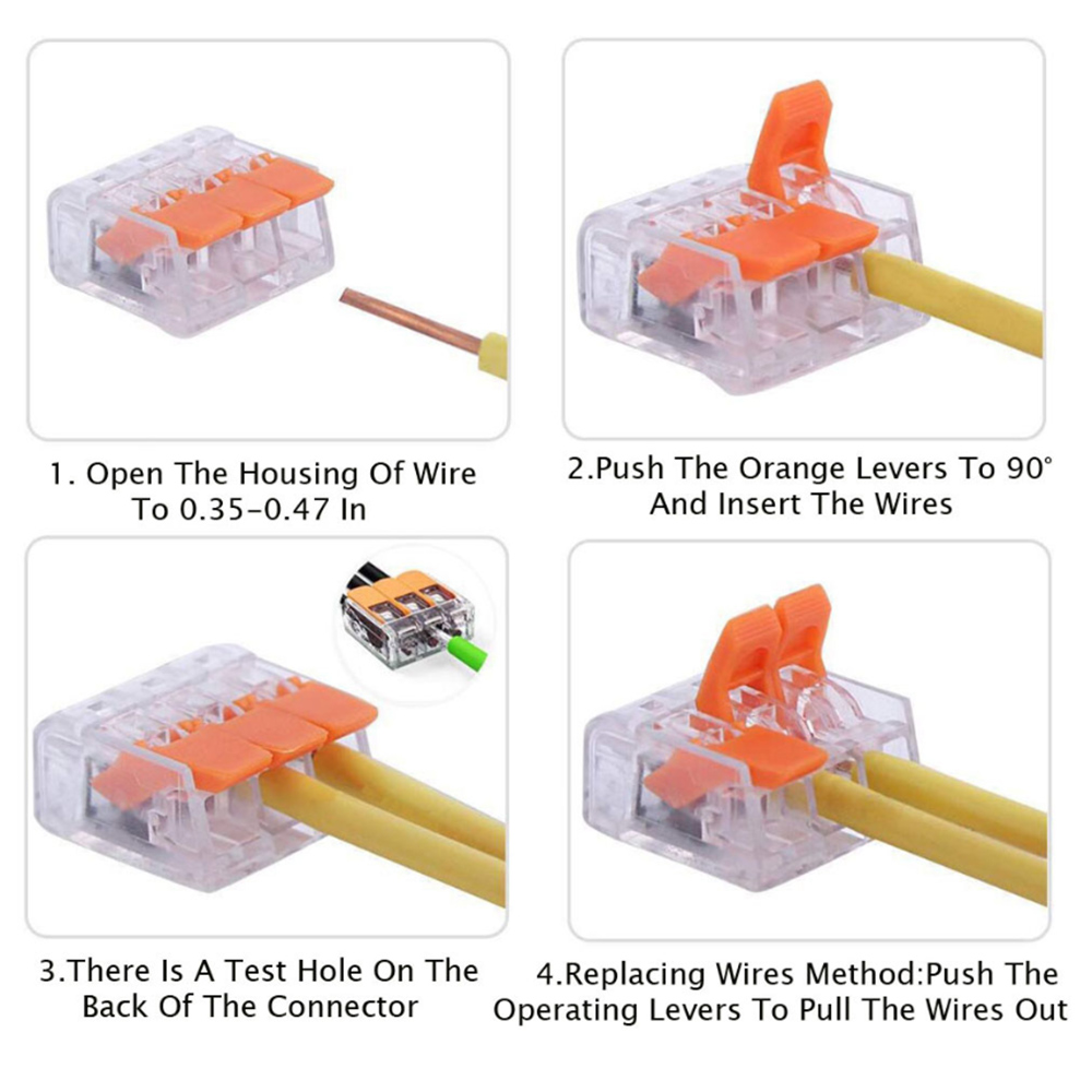 2. Соединитель для соединения плетеных и твердых проводов и проводов различных размеров. Они работают с каждым измерителем обычной бытовой проводки: потолочные вентиляторы, розетки, выключатели, автомобили, мотоциклы, корабли, громкоговорители, лампы, электрические коробки, люстры, переключатели на светильник, элементы управления вентилятором, И многое другое.