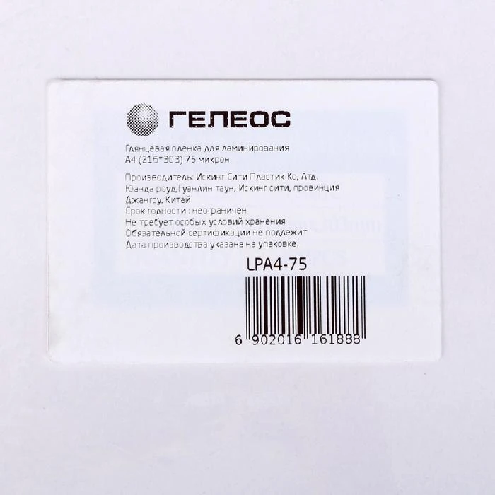 Пленка для ламинирования Гелеос, А4, 75мкм, 100шт, 216*303мм, глянец 5156786