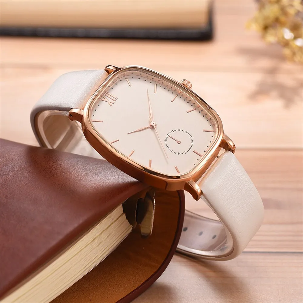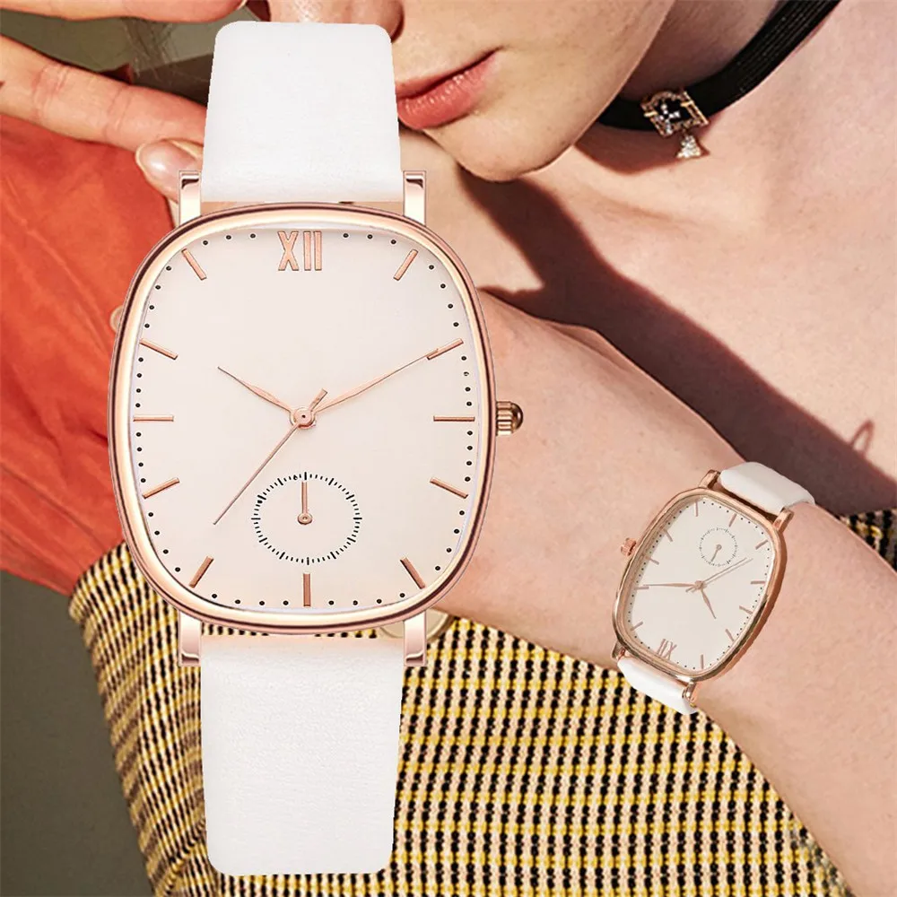 Простые квадратные женские часы, модные повседневные женские кожаные Наручные часы, белые женские кварцевые часы, подарок, Прямая поставка