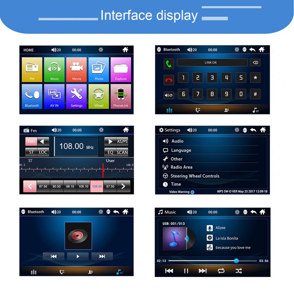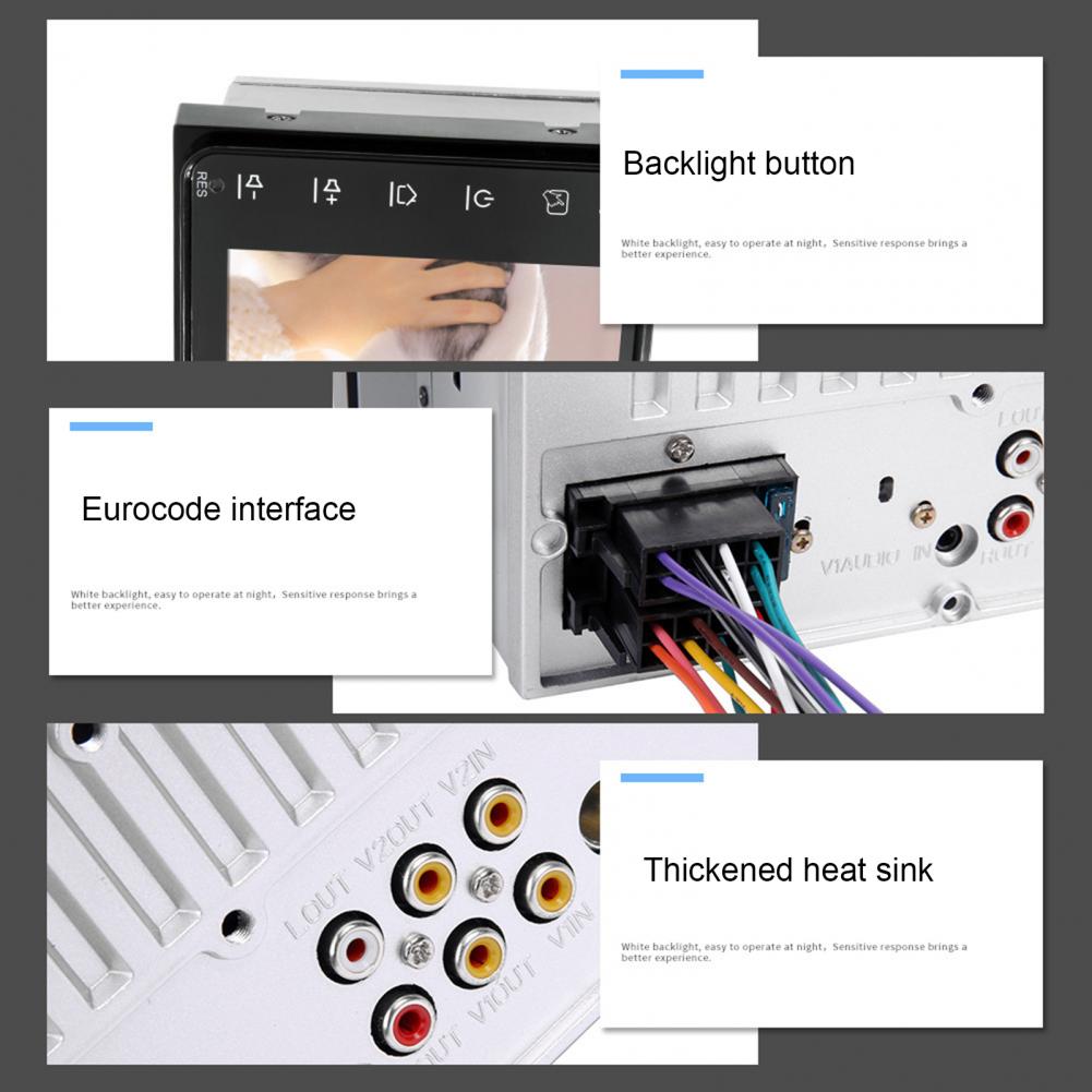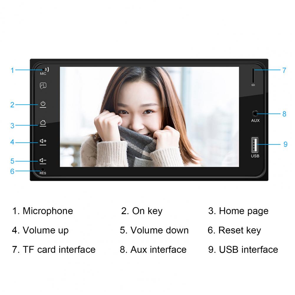 Продукт поддерживает функцию радио, функцию AUX, функцию Bluetooth, чтение u-диска (аудио/видео/картинка), аудиовыход RCA (который может быть связан с сабвуфером), функция заднего вида (камера опционально), видеовход, оригинальная функция обучения рулевого колеса автомобиля, функция зеркальной связи (для Android/Apple), полноэкранные сенсорные кнопки, И специальный размер панели для старой версии Toyota.