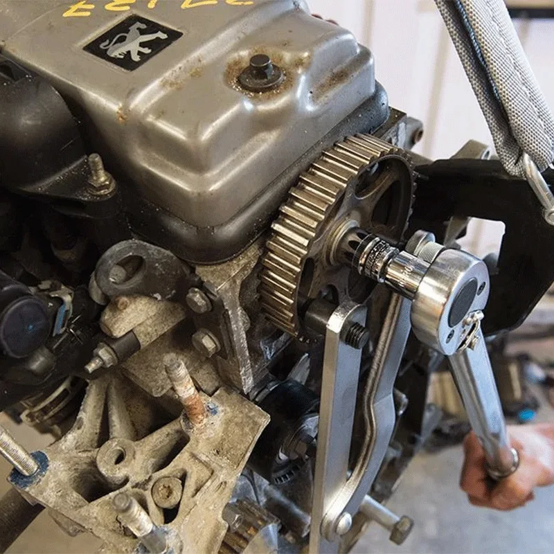 Длинная ручка позволяет технику легко удерживать шкив При затягивании или ослаблении удерживающих болтов.