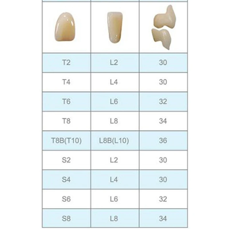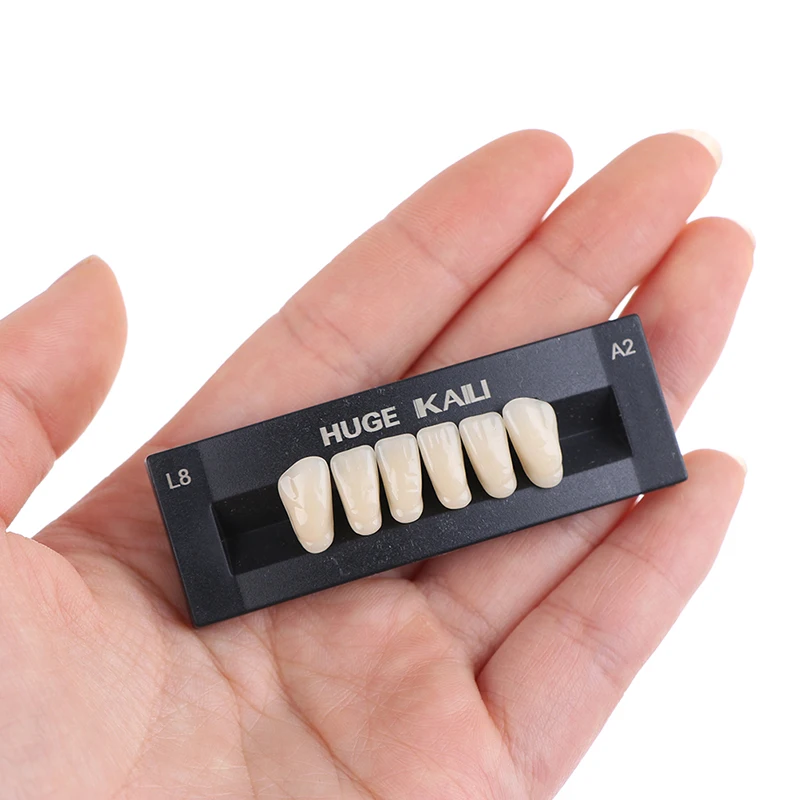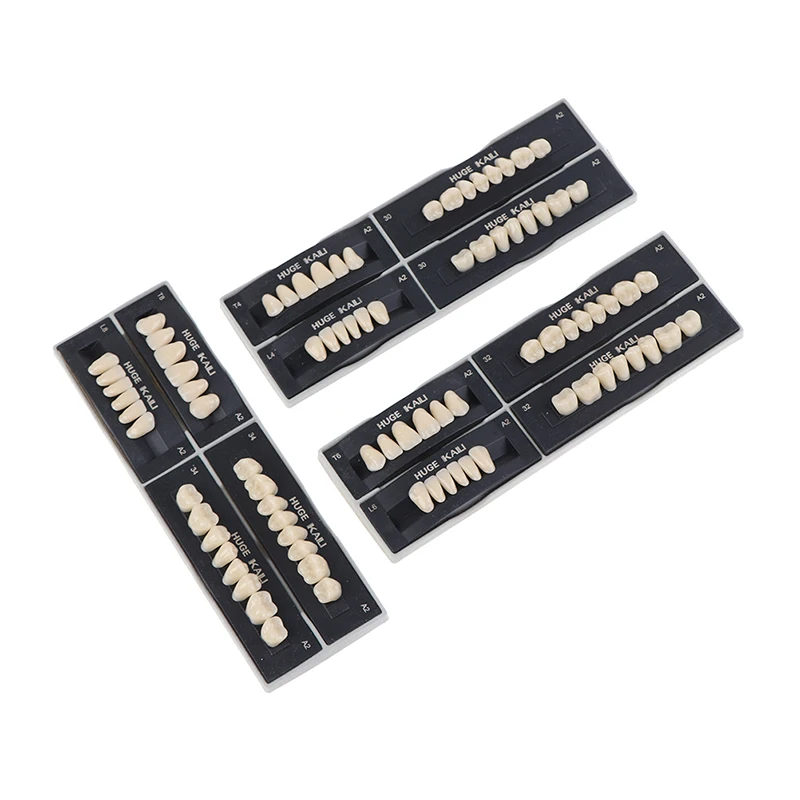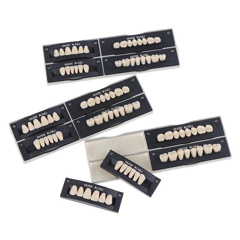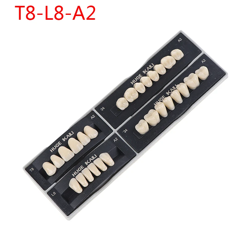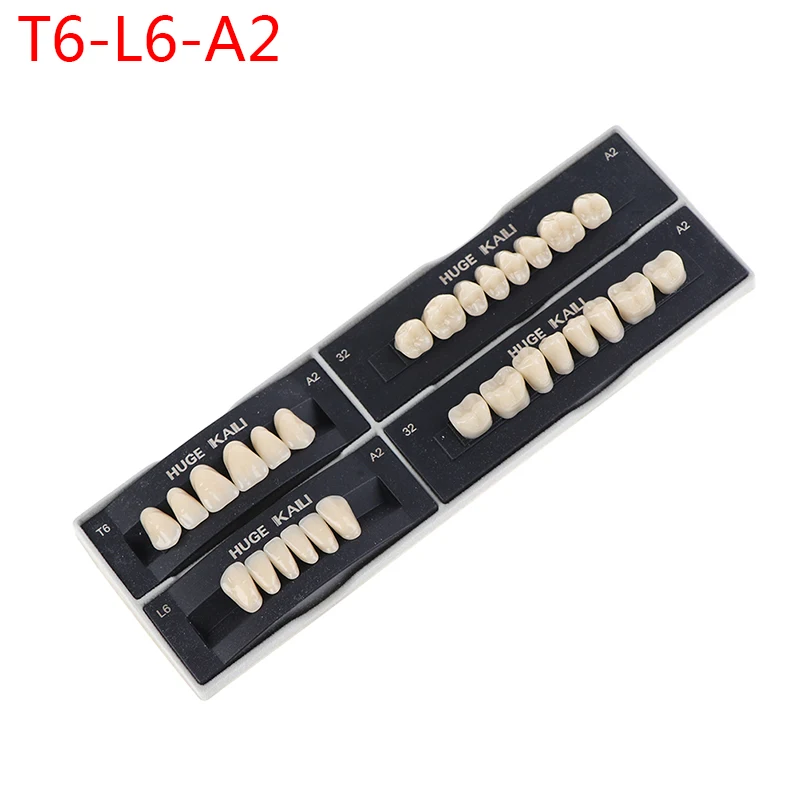Натуральный размер 28: полные верхние и нижние постоянные зубья из цветной смолы.