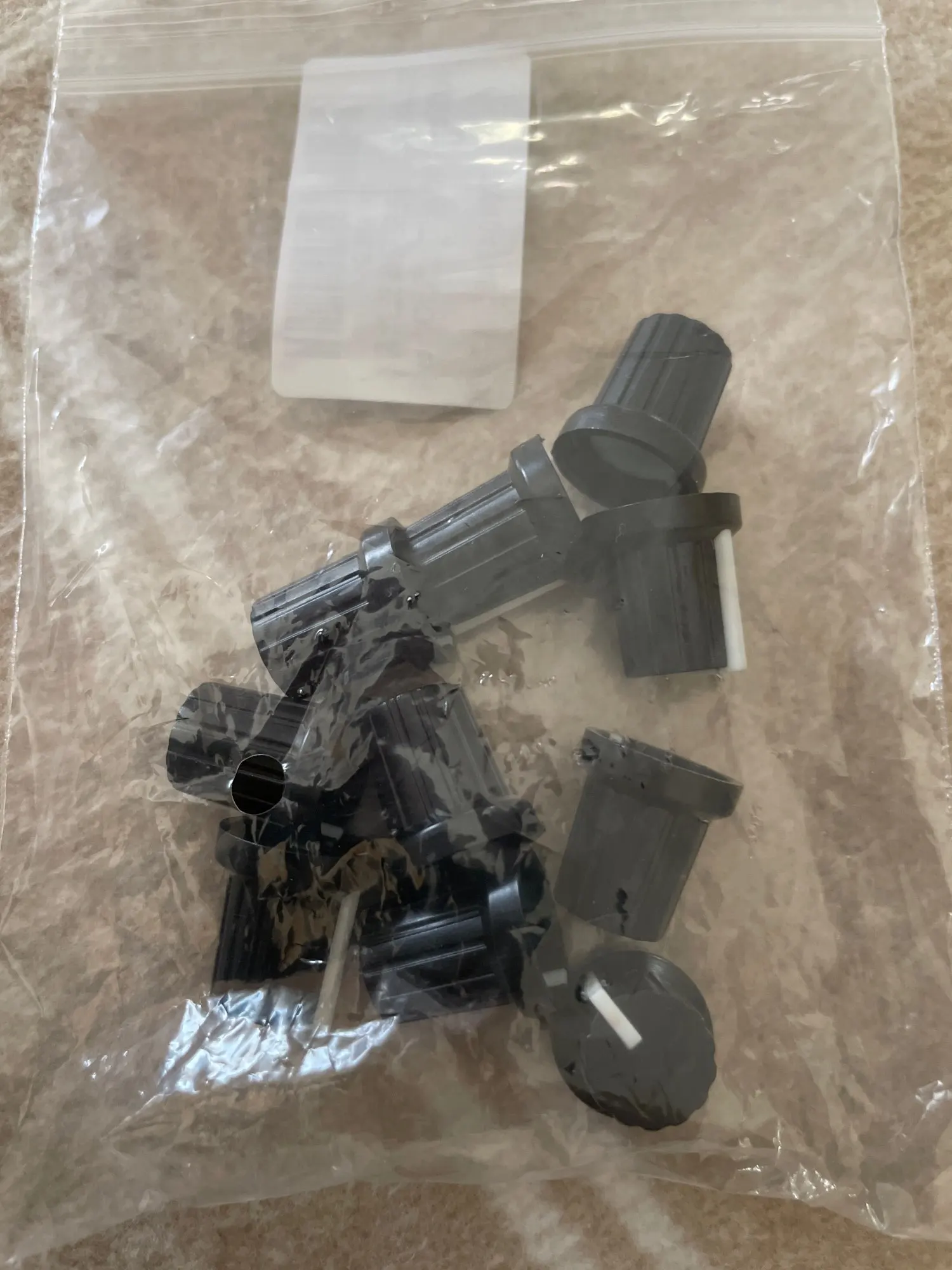 Plastic control knobs to be assembled to potentiometers for easier rotation.