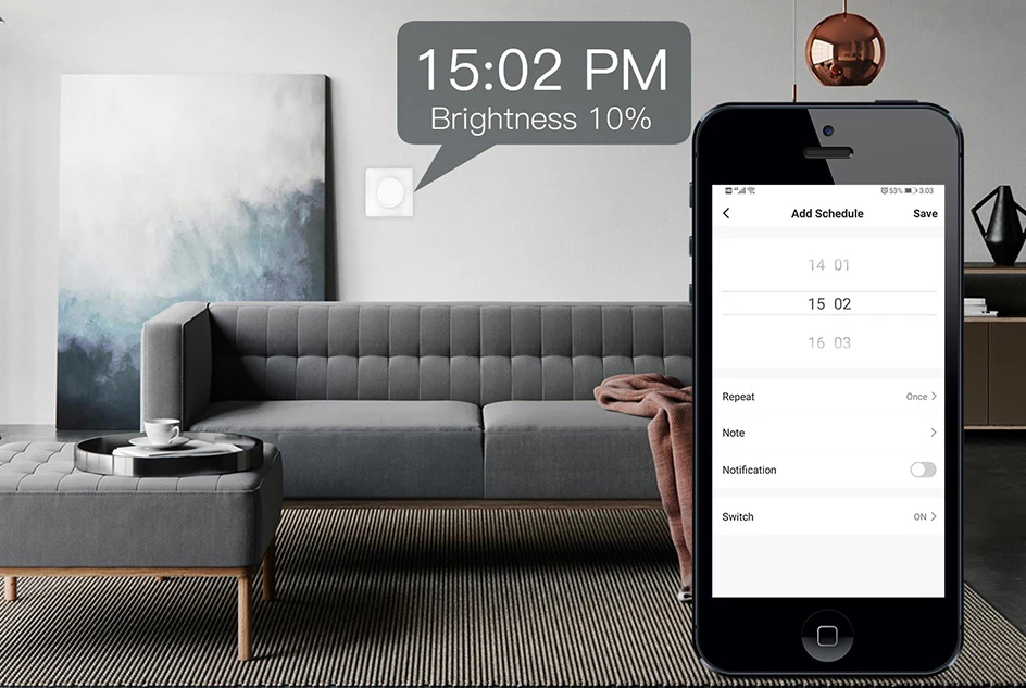 2. Режим управления без помех; Позволяет управлять переключателем через приложение Smart Life, сенсорное управление и голосовое управление; Каждый метод управления работает независимо; Достижение мультиуправления путем подключения к другим умным переключателям