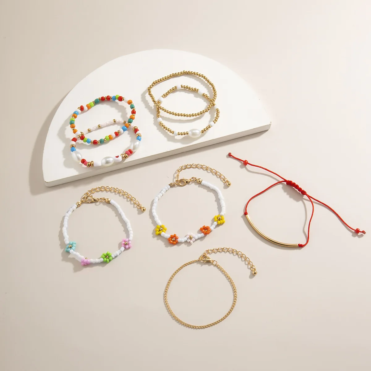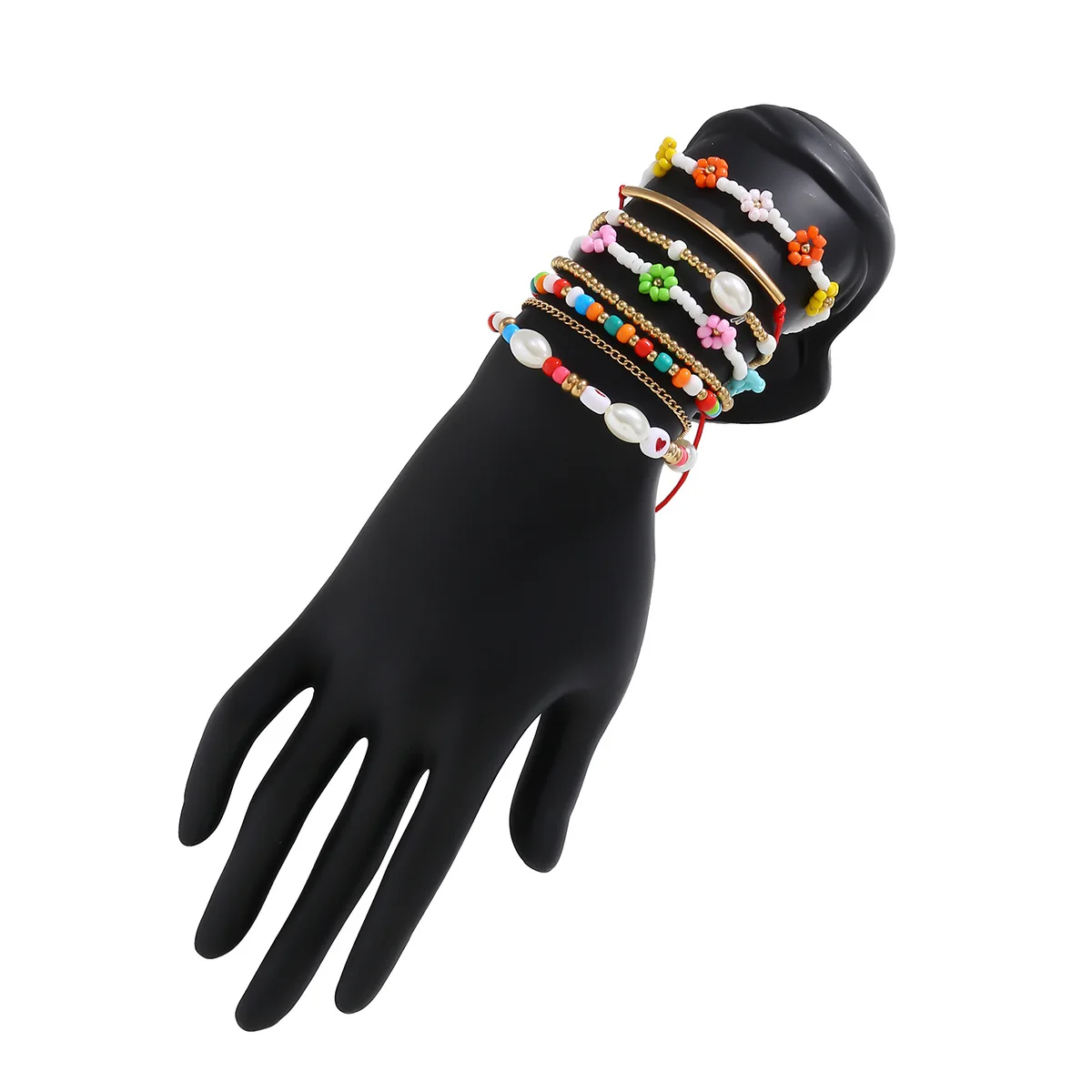 DIEZI этнический многослойный разноцветные акриловые бусины браслеты для женщин ручной работы цветок сердце Веревка Браслет наборы богемные украшения