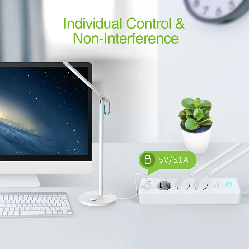 【 3 порта USB + 3 разъема 】 3 Смарт-разъема WiFi можно управлять самостоятельно или вместе. 3 порта USB управляются как один блок. Вы можете не только индивидуально Переключить электрические устройства, подключенные к розетке, ВКЛ и ВЫКЛ, но и выключить все электрические устройства одним нажатием, когда вы выходите или они не используются. Очень удобные. 3 порта USB для зарядки. Он может заряжать практически любое USB устройство (смартфон, планшет, Amazon Kindle, e-reader и т. Д.)