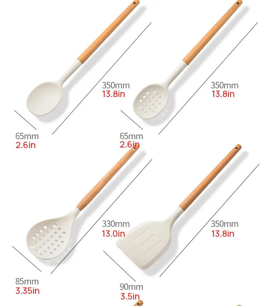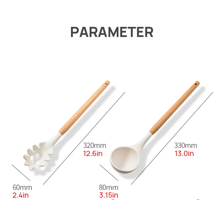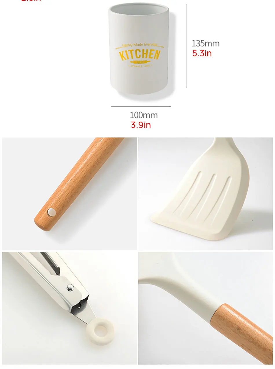 【Удобное хранение и простота очистки 】Каждый инструмент кухонной утвари имеет подвесную петлю, которую можно повесить на крючок или поместить в держатель, что значительно уменьшает беспорядок на кухне; кухонная утварь из кремниевого дерева антипригарная и легко моется с СОП или горячей водой, мы не предлагаем использовать посудомоечную машину