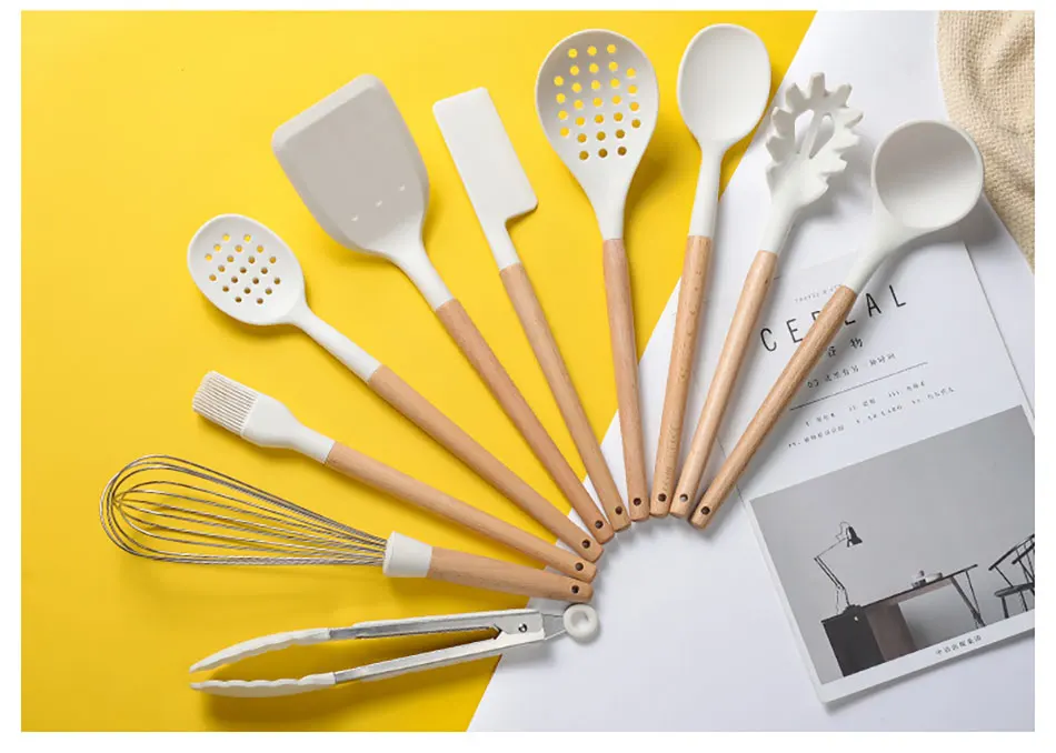 【Защита посуды и Durable】Что касается высококачественных силиконовых материалов, которые обладают большой гибкостью и мягкой поверхностью, то приготовление пищи с помощью этих силиконовых инструментов для приготовления пищи защищает кухонная посуда от любых царапин, она очень износостойкая, не коррозионная, не деформационная, долговечная
