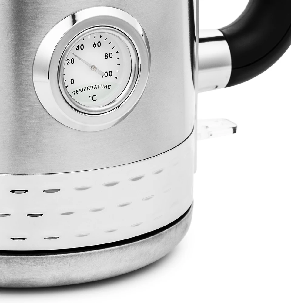 Kitfort kt-684-electric kettle with a volume of 1,7 liters with a bulb of high-quality metal. Thanks to its design, the model will become a stylish addition to your interior. Press the button located under the handle, and the device will start work. In the process of boiling the key-the indicator will glow with a bright light. The body of the device has a large informative thermometer of round shape. Due to this, you will always know the degree of heating and therefore make a truly delicious and fragrant green, black tea, Oolong or coffee.