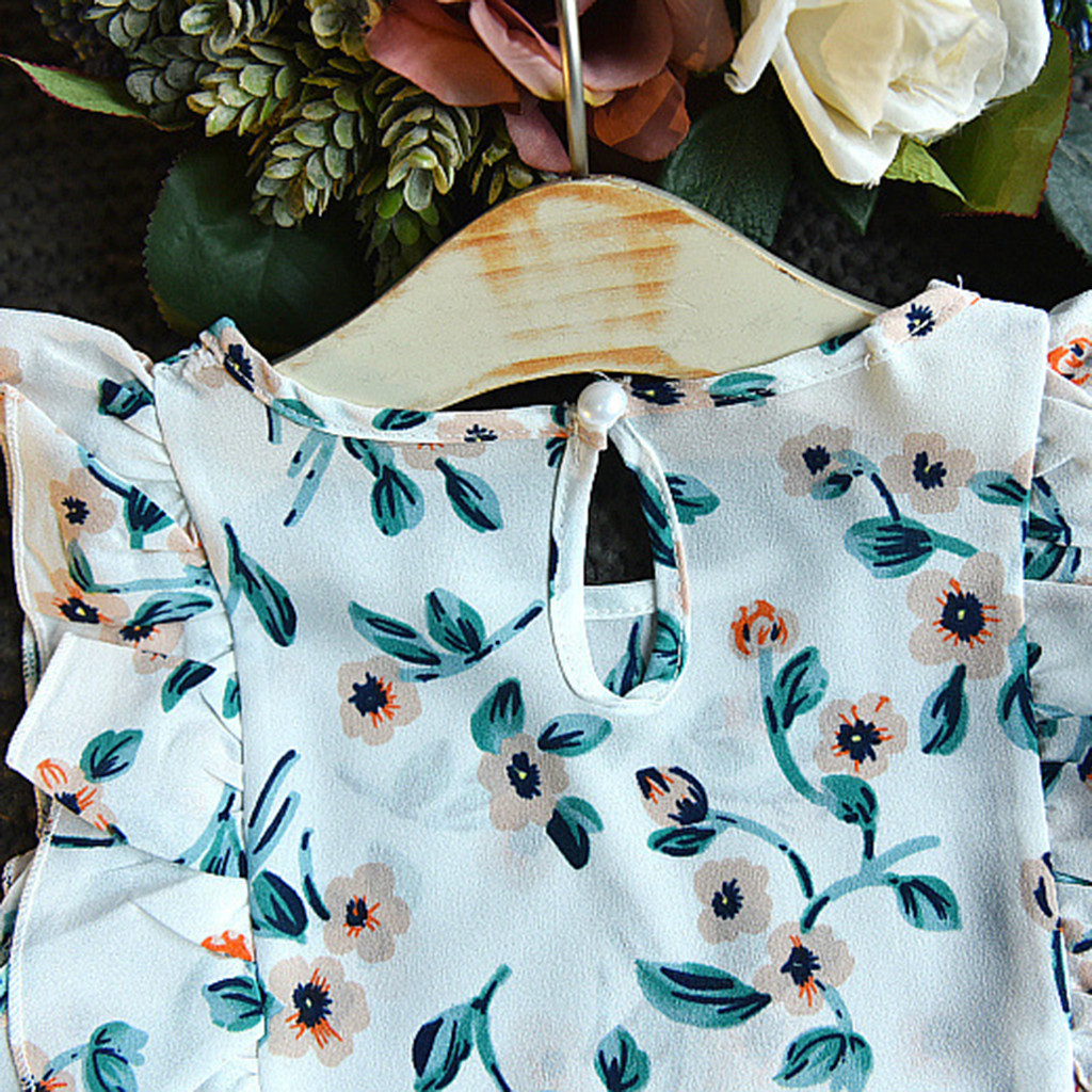 Одежда для маленьких девочек Футболка с цветочным принтом комплект из топа и шорт с поясом