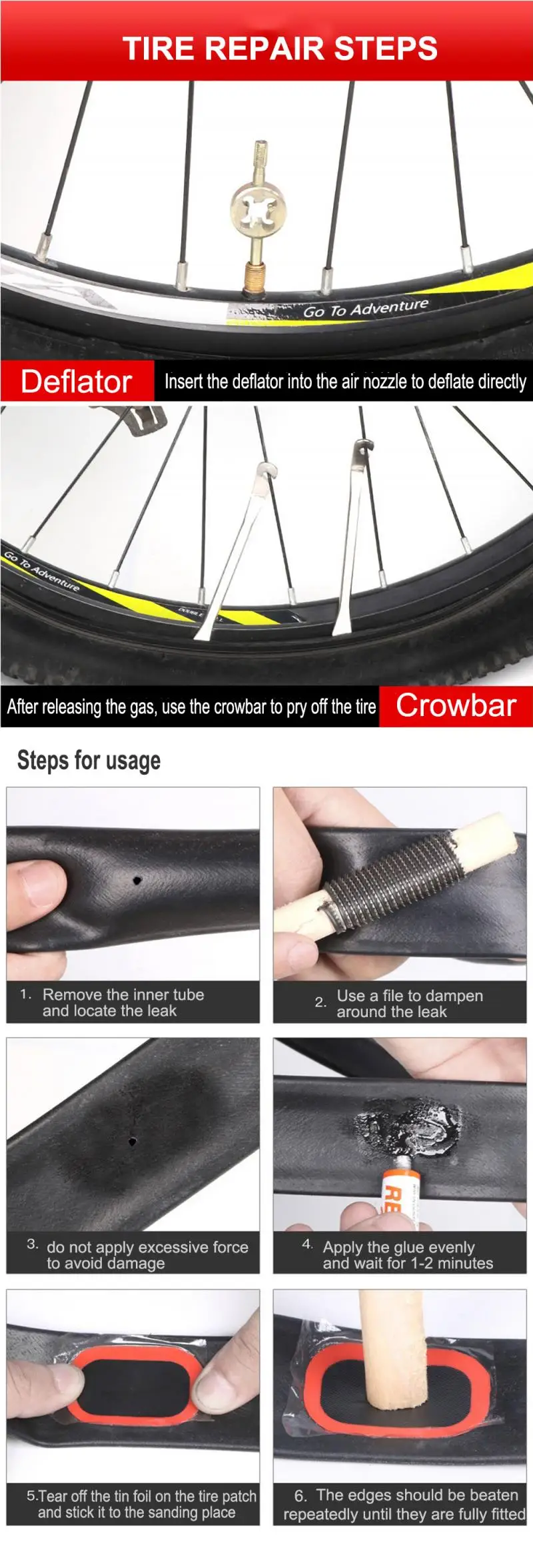 Данный продукт содержит: клей для автомобильных покрышек, лом,Файл для ремонта шин,Дефлектор шин,Пластырь для шин. Вы можете свободно Совершать покупки в соответствии с вашими потребностями