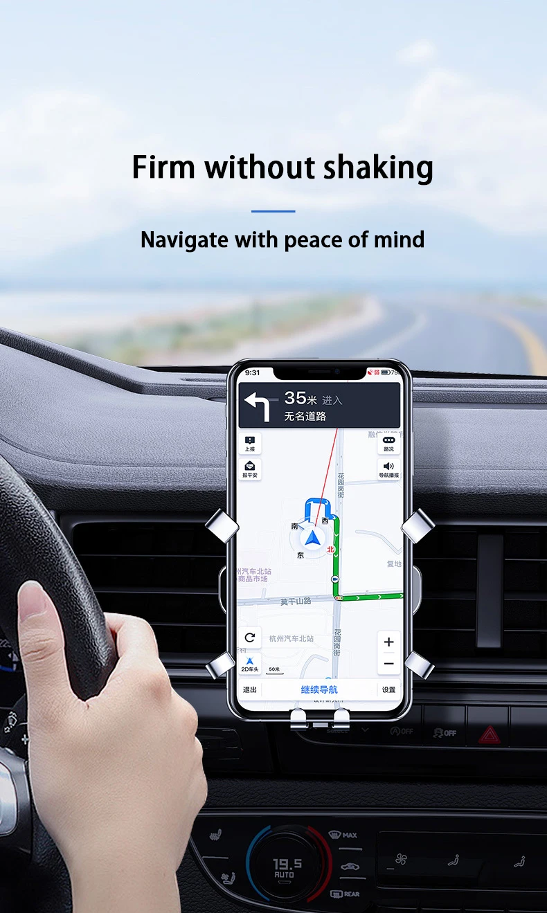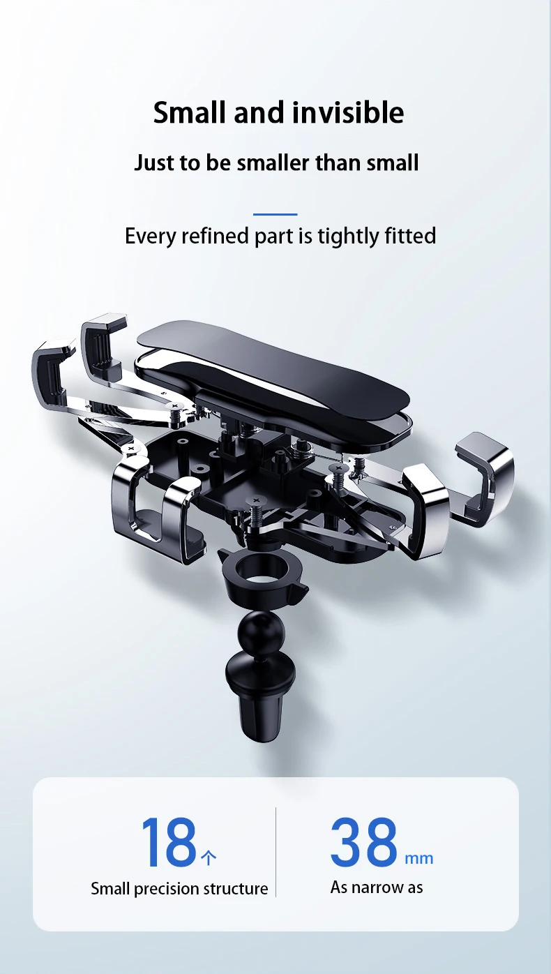 Дизайн: инновационный дизайн, гравитационная связь и треугольная поддержка, зажим автоматически зажимается, когда телефон надевается на держатель, устойчивый и стабильный, автоматически отпускается при извлечении телефона из держателя, легко и удобно. Прочность и хорошая защита: резка из высококачественного алюминиевого сплава, окисление поверхности, В автомобильном креплении используется эластичный и противоскользящий зажим, который надежно удерживает вентиляционное отверстие на мягкие резинки на вентиляционном отверстии, чтобы не поцарапать ваши устройства.