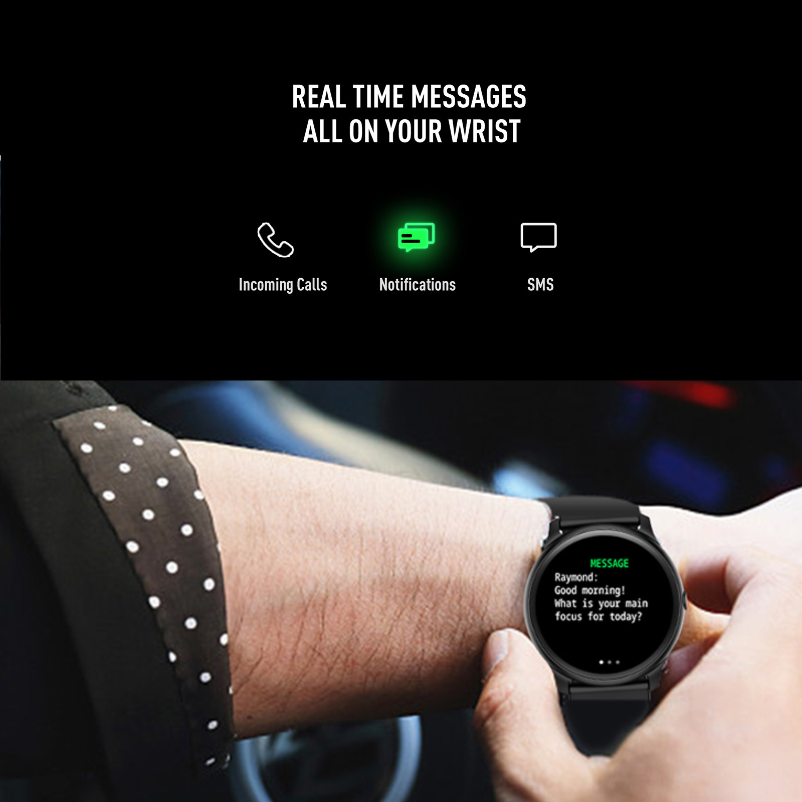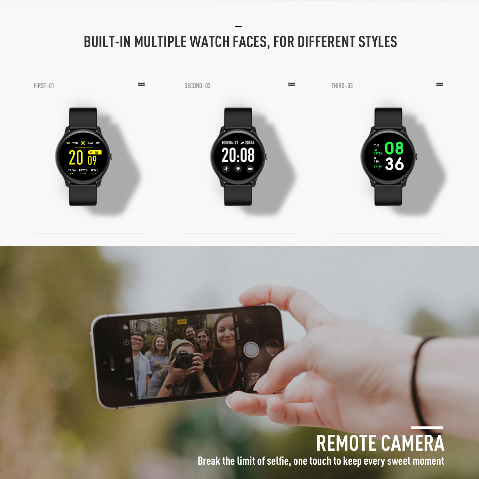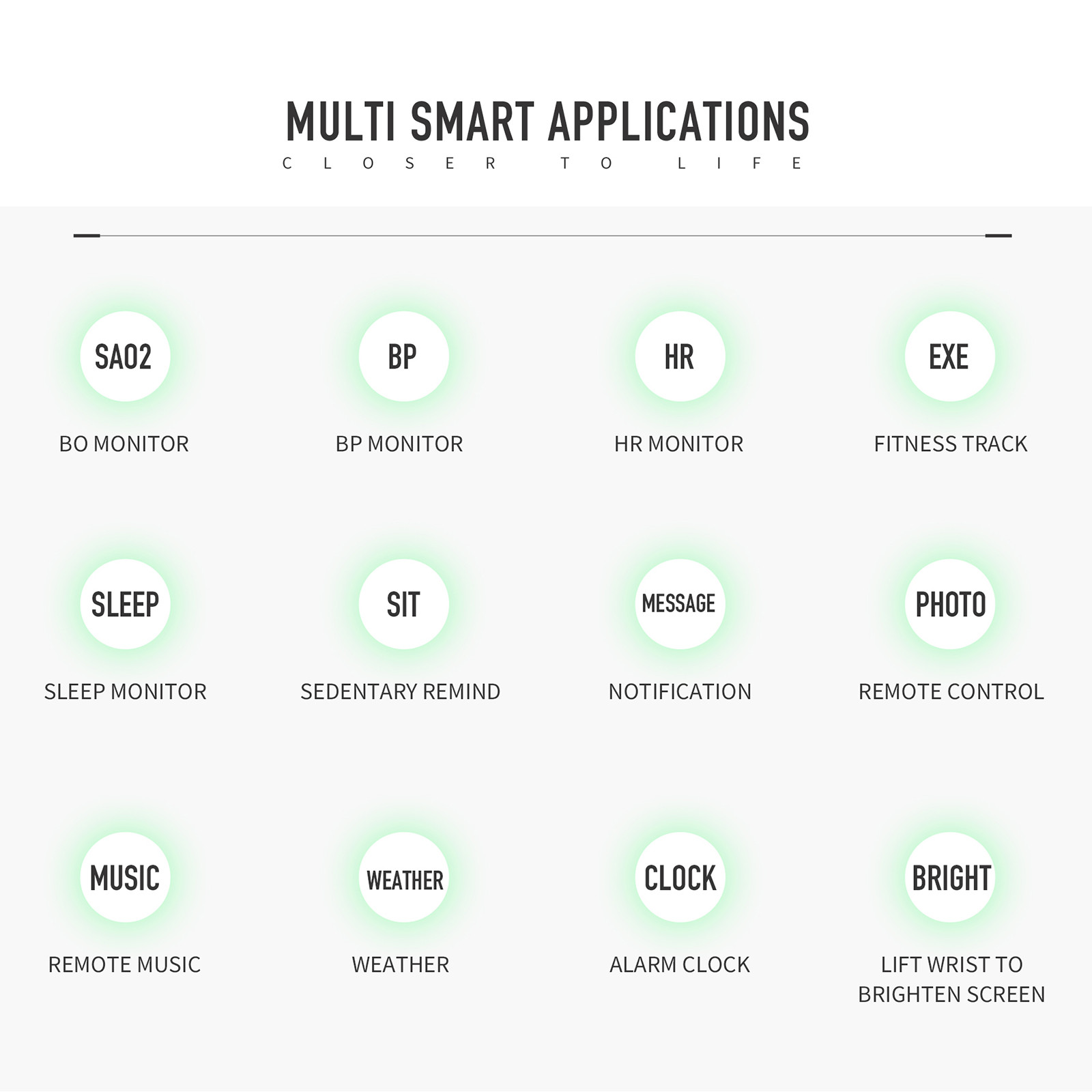1,3 дюймовый круглый TFT HD Экран 1,3 дюйма высокое разрешение Круглый полный-СенсорныйЭкран делает отображаемое содержимое более ярким и Красивый. Больший экран, по ширине запястья, приятный Ощущение ношения. Пульс в реальном времени Монитор/монитор артериального давления/Монитор кислорода в крови Он может точно контролировать Импульсы и активные и отдыхающие изменения частоты сердечных сокращений для создания Профессиональный отчет о пульсе. Поддержка монитора артериального давления и крови Кислородный монитор (не Профессиональный-Медицинский Оборудование, данные о кровяном давлении приведены только в качестве справки). Монитор сна Отслеживает ваш сон Качество за счет измерения продолжительности для глубокого сна, без быстрого сна и Состояние бодрствования. Несколько спортивных режимов Имеет 7 спортивных режимов: Бег, прогулки, футбол, прыжки, бадминтон, баскетбол, езда на велосипеде. Он имеет Функции шагомера, расстояния, калорий, секундомера. IP67 водонепроницаемый С ним легко справиться Ежедневная гидроизоляция (нельзя плавать или контактировать с горячей водой, подходит для Нормальная холодная вода). Оборудование Чипсет HS6620D Память RAM 128 Кб + ROM 256 Кб + SPI 4 Мб -СенсорныйСенсорный экран Синголо Дисплей TFT da 1,3 Pollici; risoluzione : 240*240 пикселейПосылка