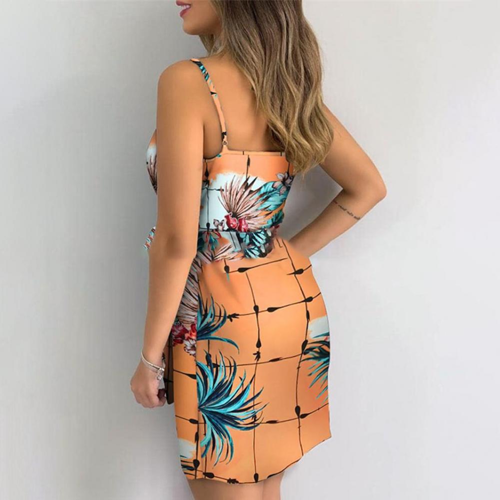 Летнее платье с цветочным принтом и листьями; Обтягивающее женское платье на бретельках; Пляжная одежда в богемном стиле