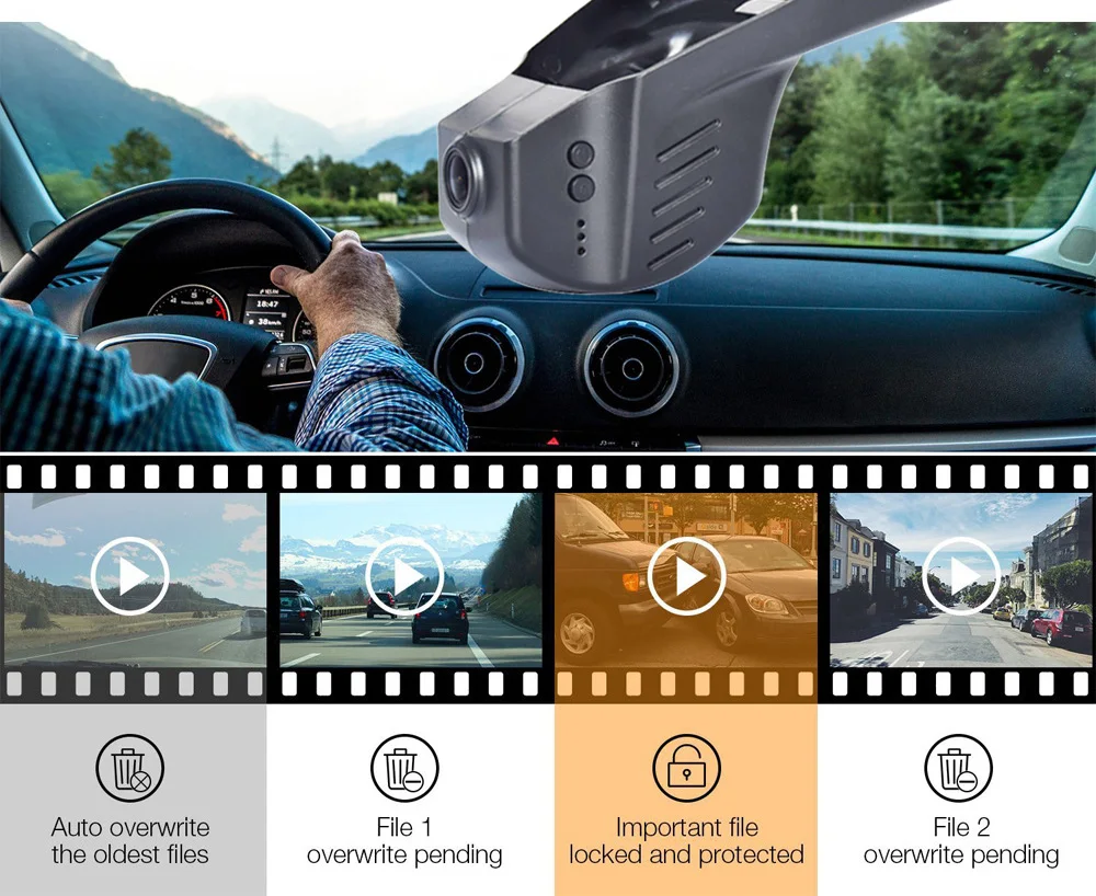 Циклическая запись без утечки секунд сегментация видеоЗапись, когда видео заполнено, запись будет автоматическиУдалите ранее Записанные видеоклипы и записывайте их вПетля, так что вам не придется беспокоиться о частых сменах карт.