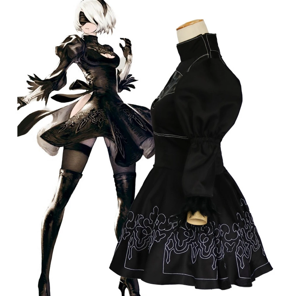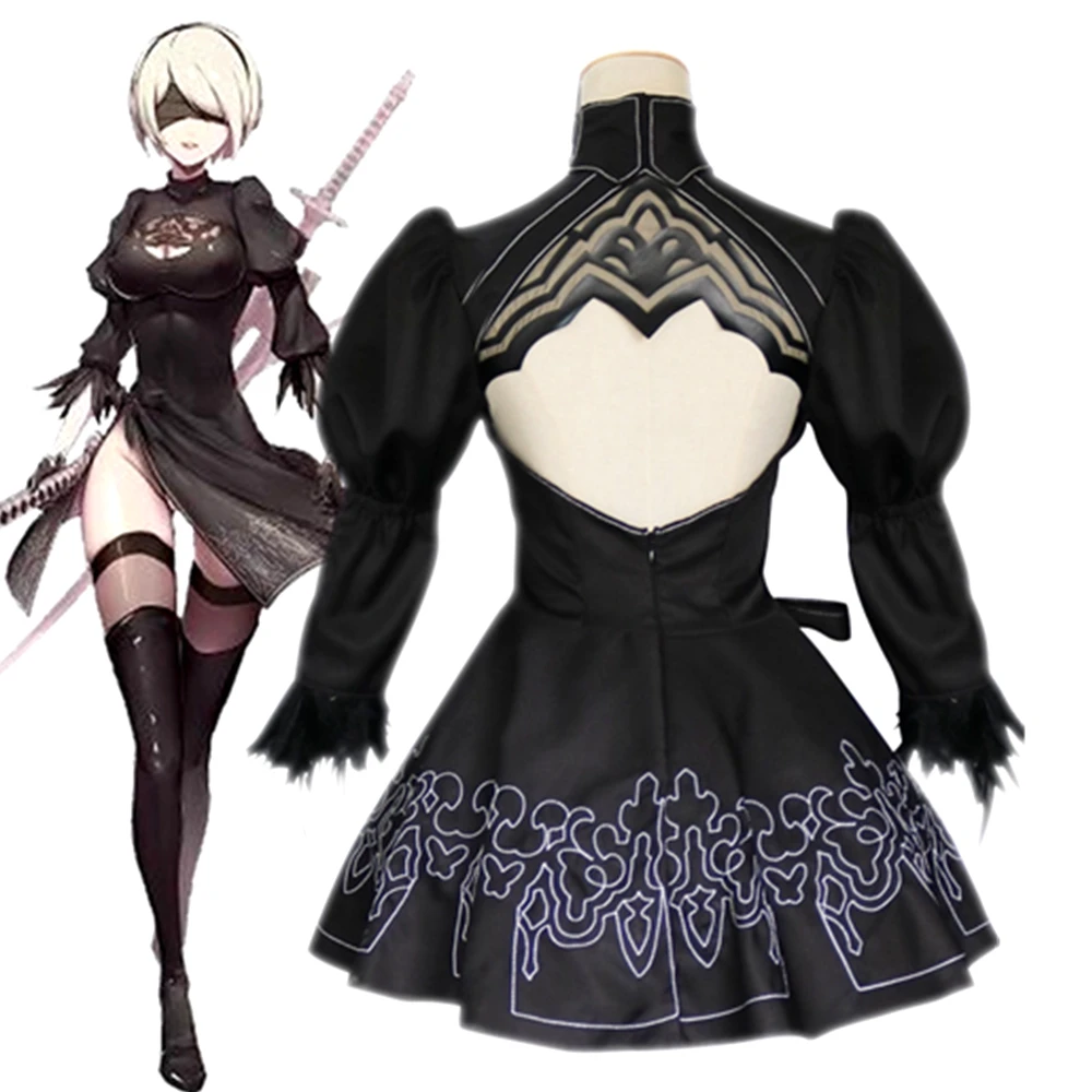 Game Nier Automata Yorha 2B Cosplay Costume Anime Uniform Suit Women Girls Halloween Party Fancy Outfits Black Dress Wig Set