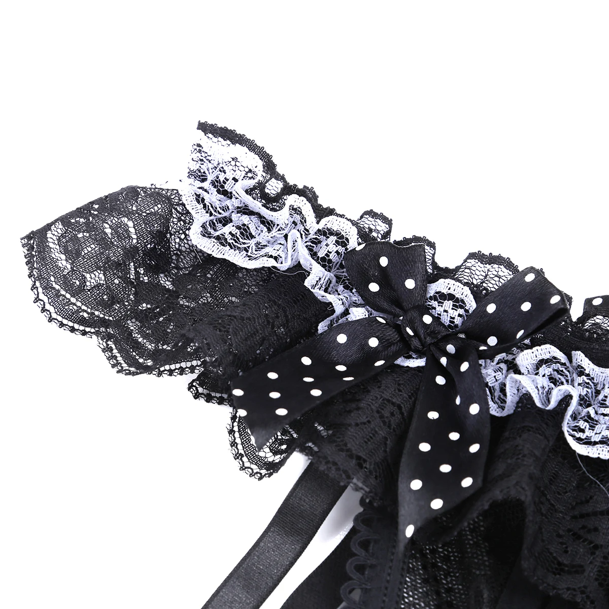 Красивый кружевной пояс с рюшами; Узор в горошек; Бант; Вырез без косточек и открытая попка.