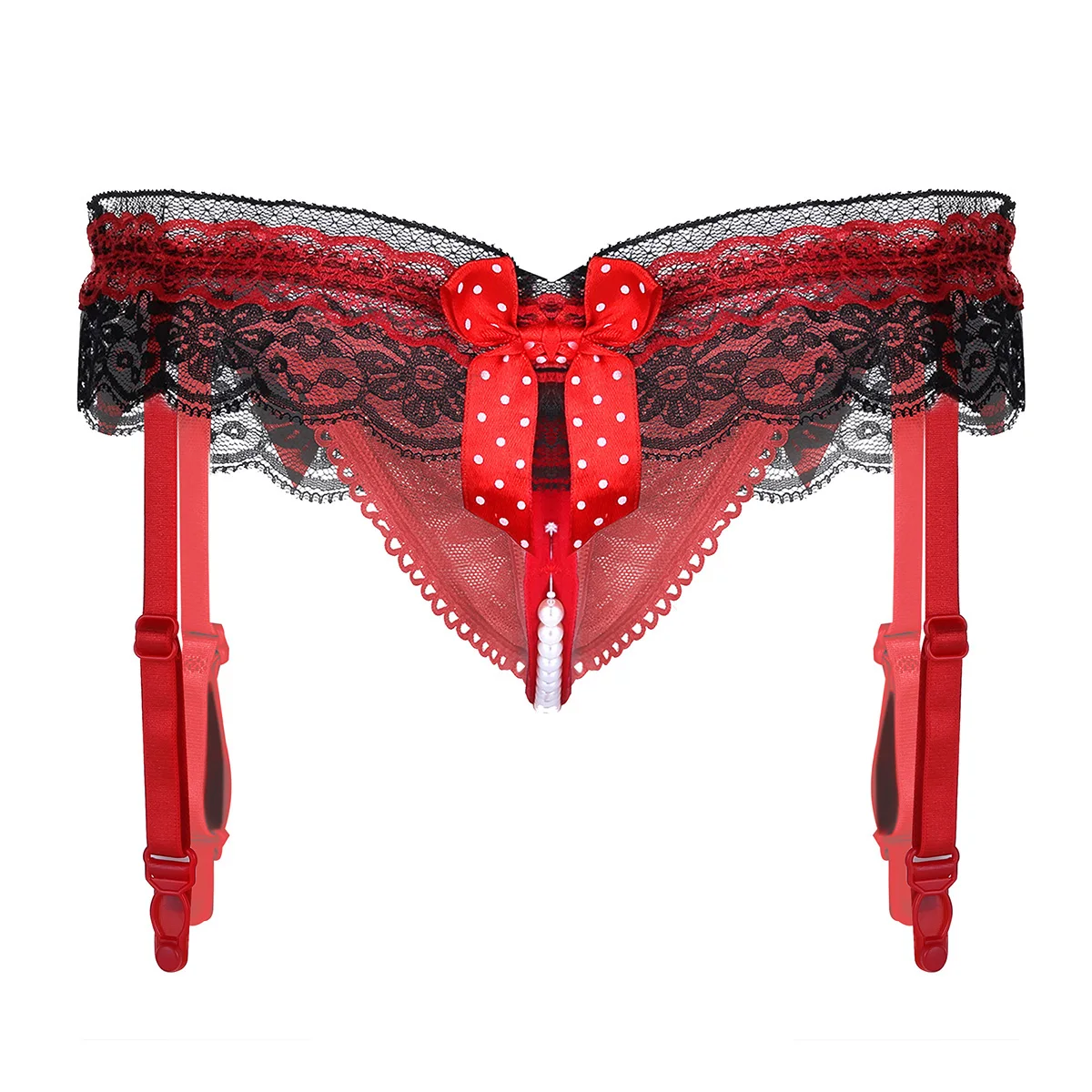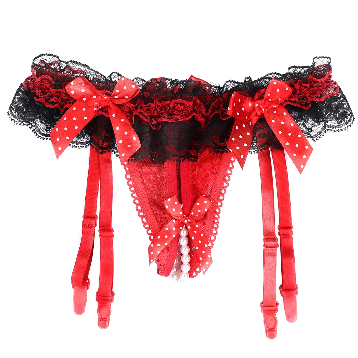 Женские сексуальные трусики без косточек, кружевные трусики с рюшами и открытой промежностью, трусики-стринги с жемчужинами, массажное нижнее белье с подвязками