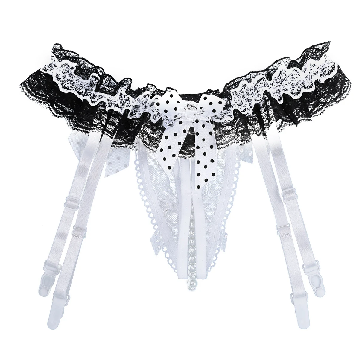 Жемчужная цепочка ручной работы обеспечит интимный массаж с 4 подвязками для хранения чулок.