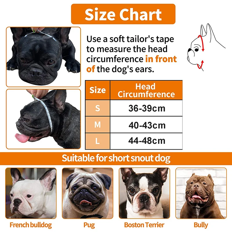 Подходит для коротких собак-Подходит для французских бульдогов, английских бульдогов, Ши-тцу, Мопсов, Бостонского терьера, тибетского-спаниеля, боксера, питбуля, чихуахуа, пуделей, Пекинских собак, Шарпей собак, собаки-мастифы и другие короткие мордочки.