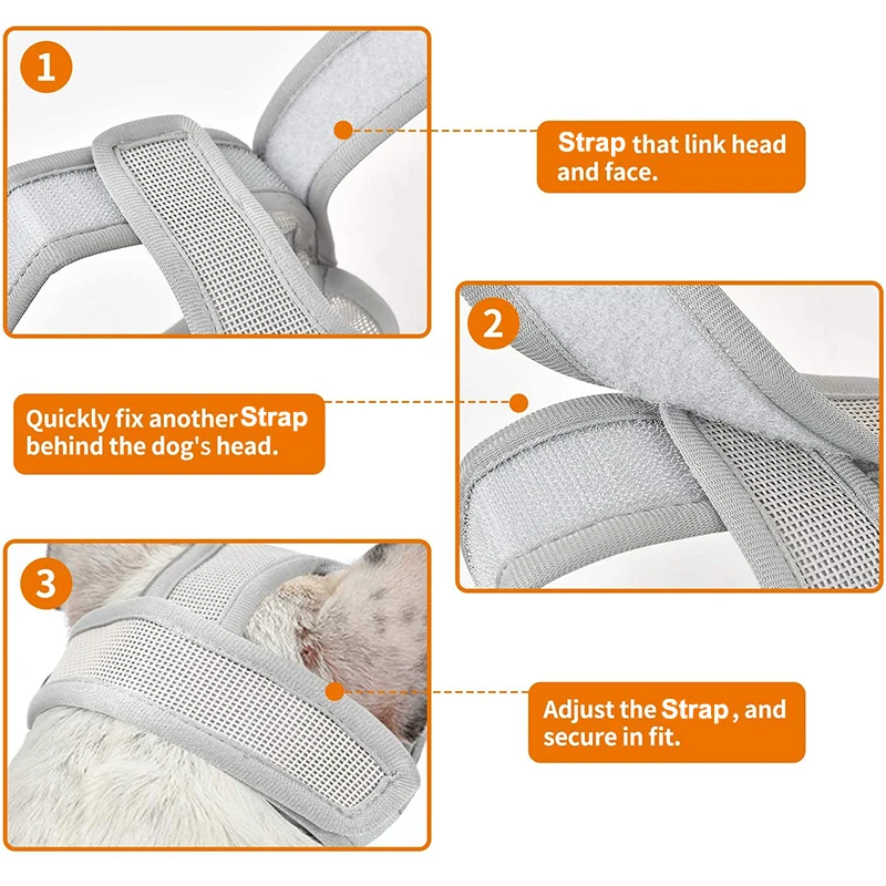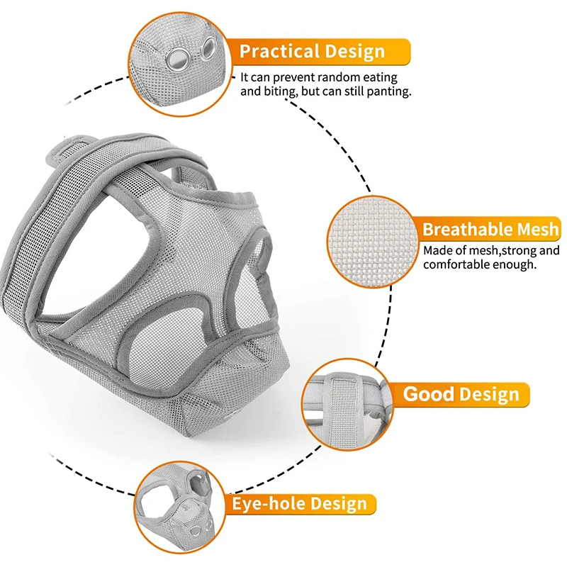 Совершенная конструкция --Дизайн отверстия для глаз не сковывает зрение вашего питомца. Дизайн язычка гарантирует, что он может эффективно предотвратить кусание, хаос, жевание, случайное питание.