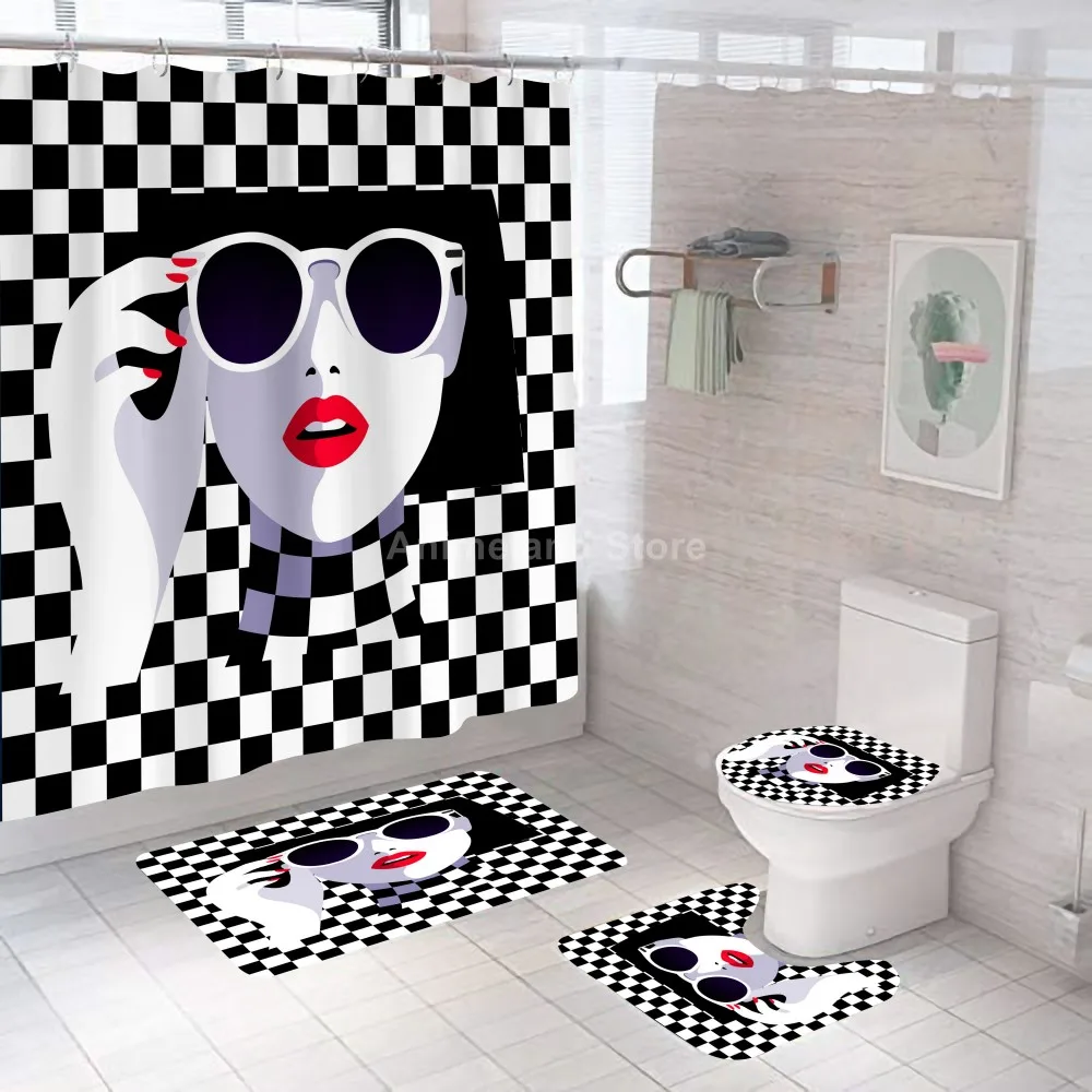 4 шт. набор штор (W71xH71in 180x180 см занавеска для душа * 1 3 шт. Набор ковриков * 1)