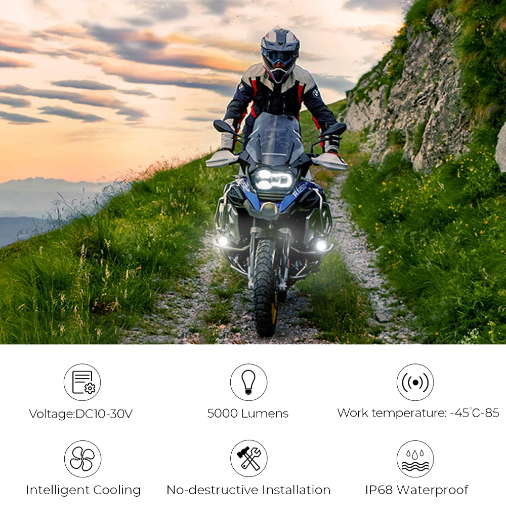 -Наш светодиодный светильник позволяет вам видеть других водителей. Яркий белый светодиодный луч света привлекает внимание других водителей, которые иногда не видят мотоциклов. В то время как наш светодиодный привлекает внимание других мотоциклистов, они не так яркие, что они слепы и отвлекают их.