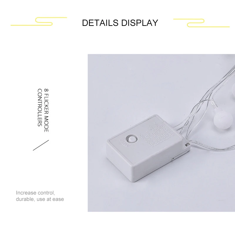 2. Тип батареи 5 метров 40 огней, 10 метров 80 огней водонепроницаемый батарейный блок + пульт дистанционного управления