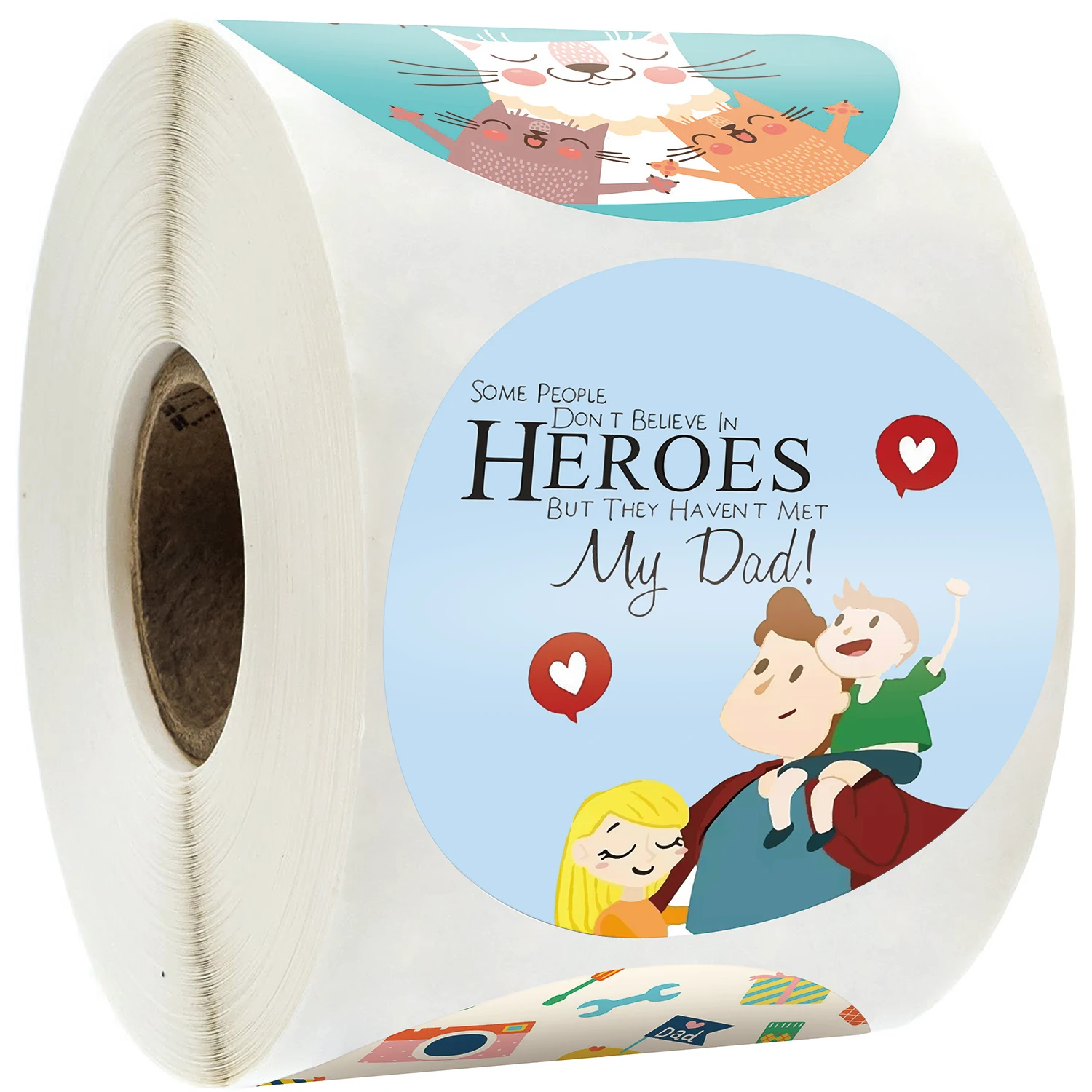 Счастливый День отца Стикеры рулон 1,5 дюймов 500 шт./рулон 8 с принтом героини мультфильма круг Этикетки отца, матери, дочери и сына подарочная упаковка вечерние декоративные бирки