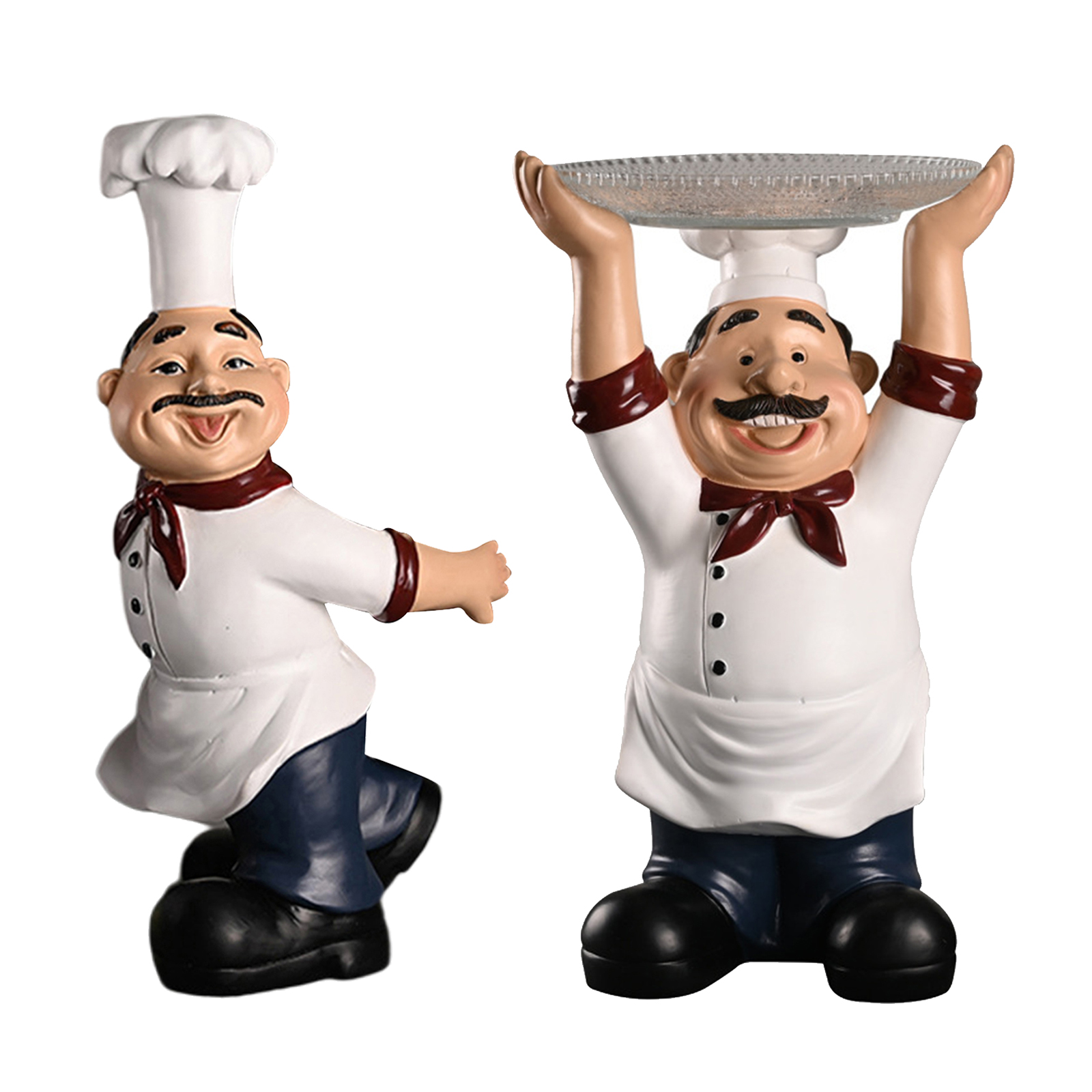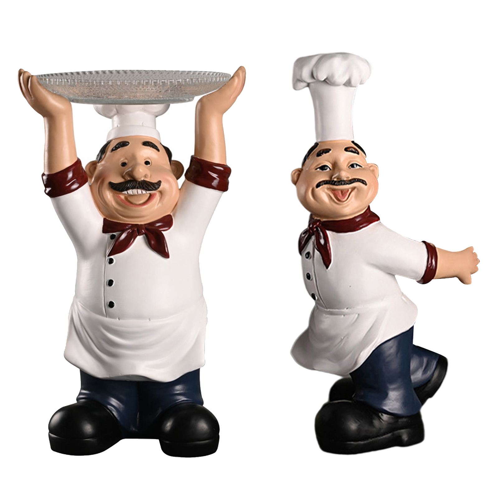Эта декоративная фигурка шеф-повара изготовлена из высококачественной смолы, окрашена вручную и отполирована.