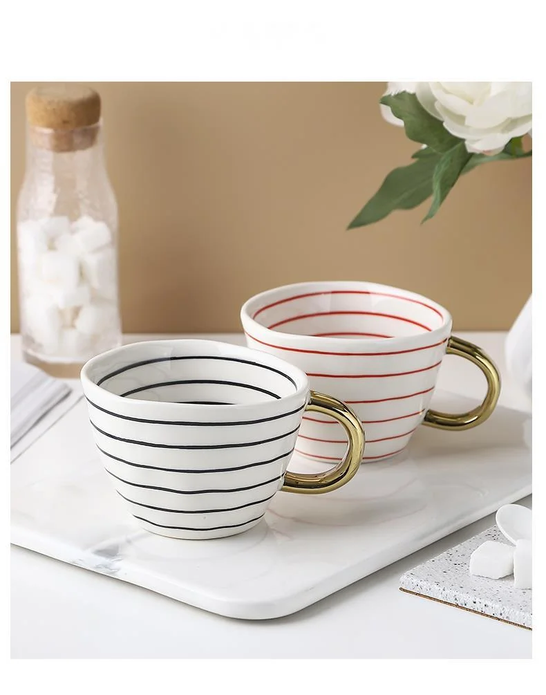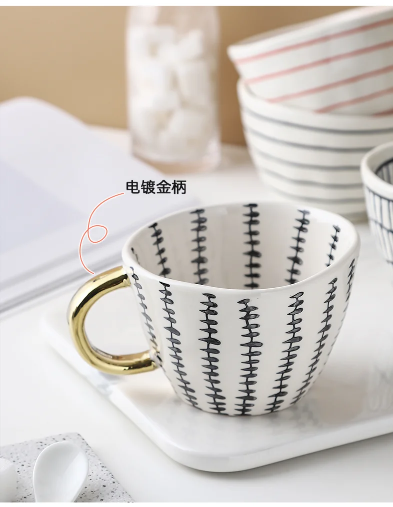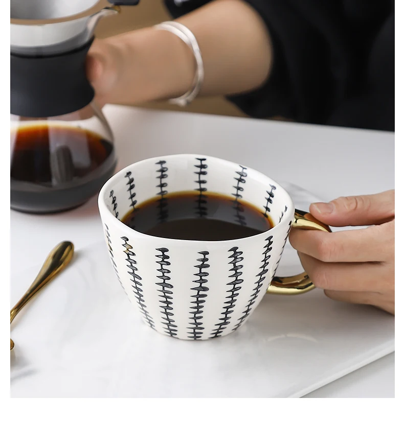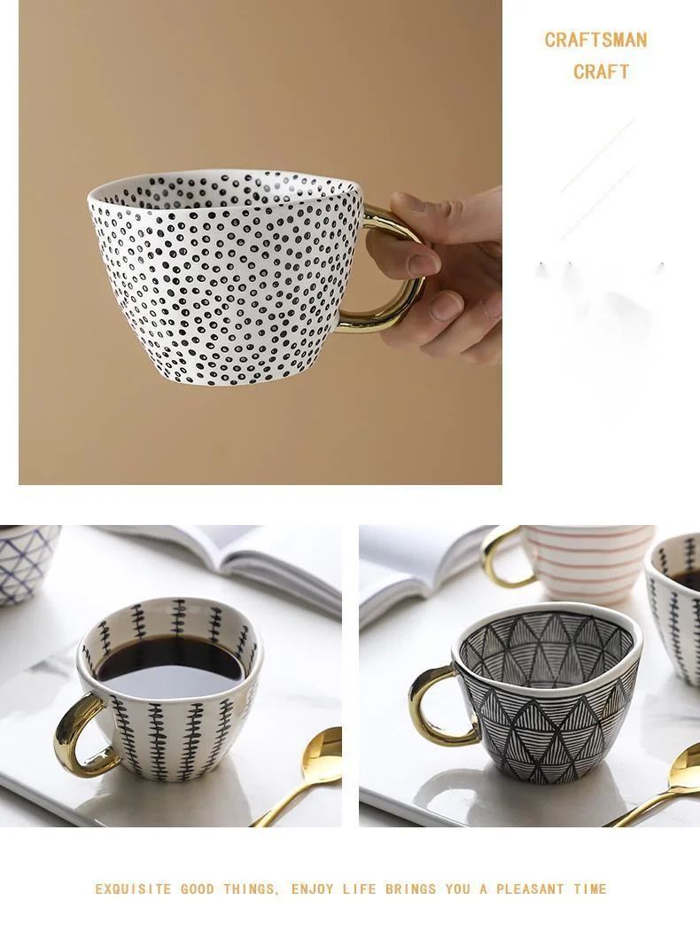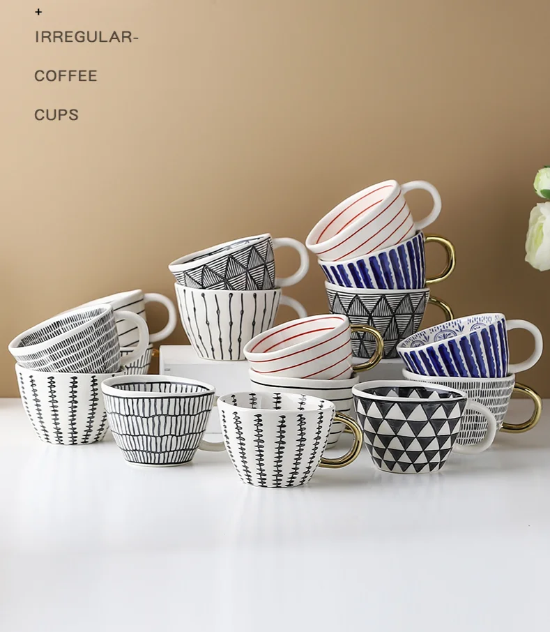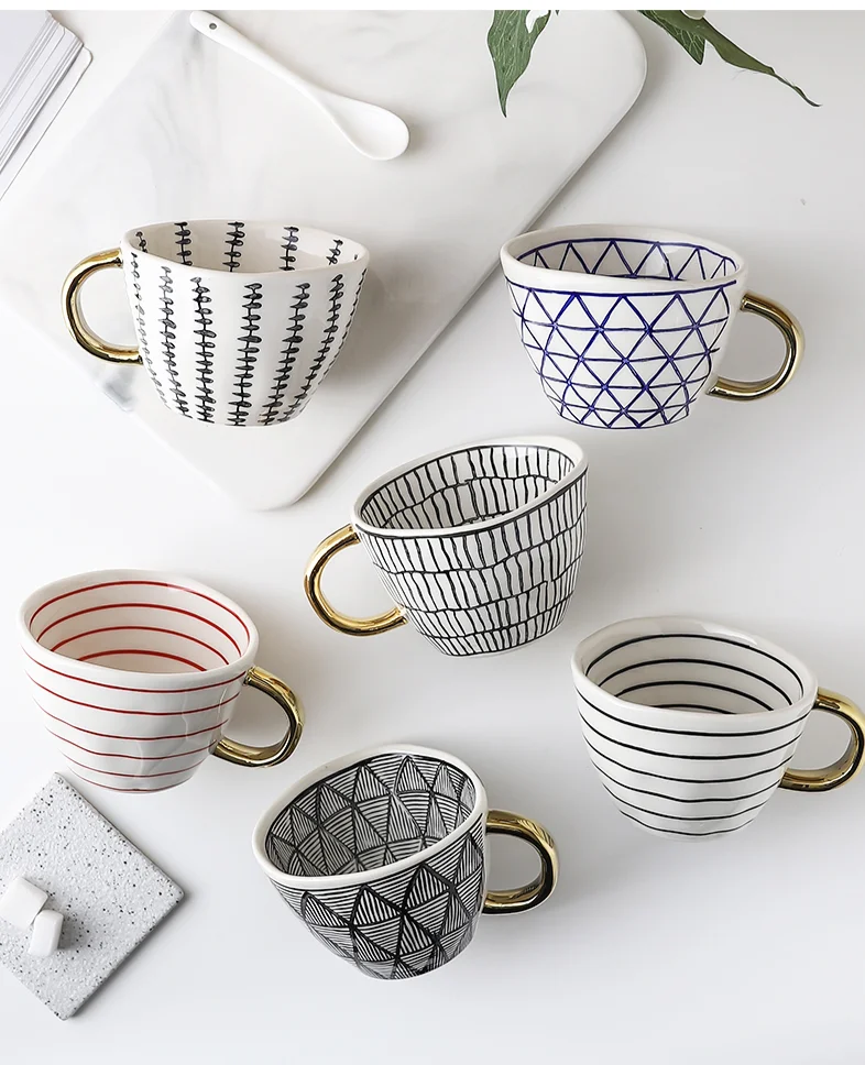 Скандинавские геометрические керамические кружки с золотой ручкой ручной работы кофейные чашки неправильной формы чайная чашка с кружкой для молока уникальные подарки Домашний декор