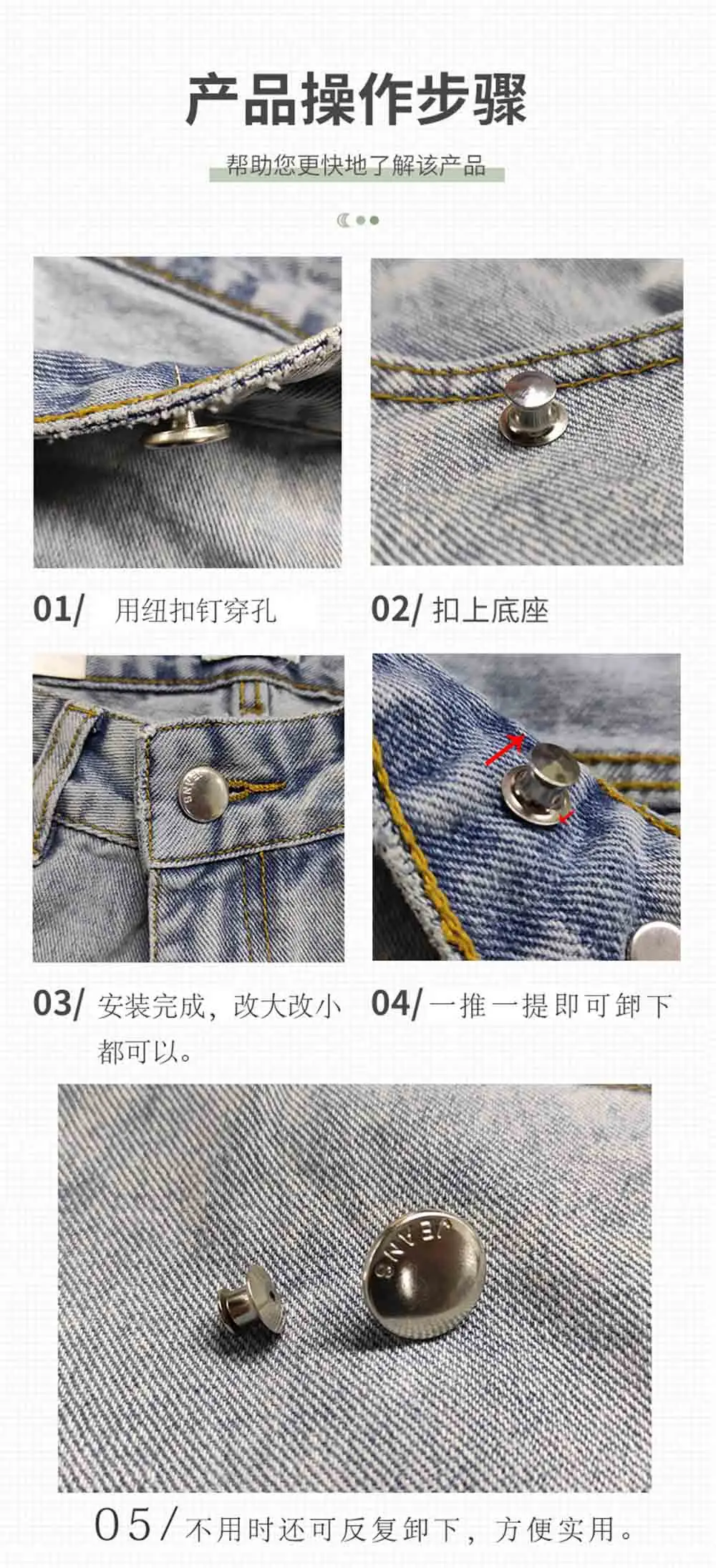 5pcs Metal Jeans Button Fastener Free-sewing Free-nail Adjust Increase Reduce Waist Detachable Buttons For Pants Clothes