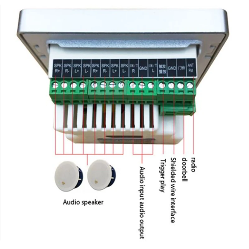 4. Воспроизведение входного сигнала AUX, поддержка внешнего аудио входа в блок, усиленный выходной объем может достигать 20 уровней регулировки громкости.