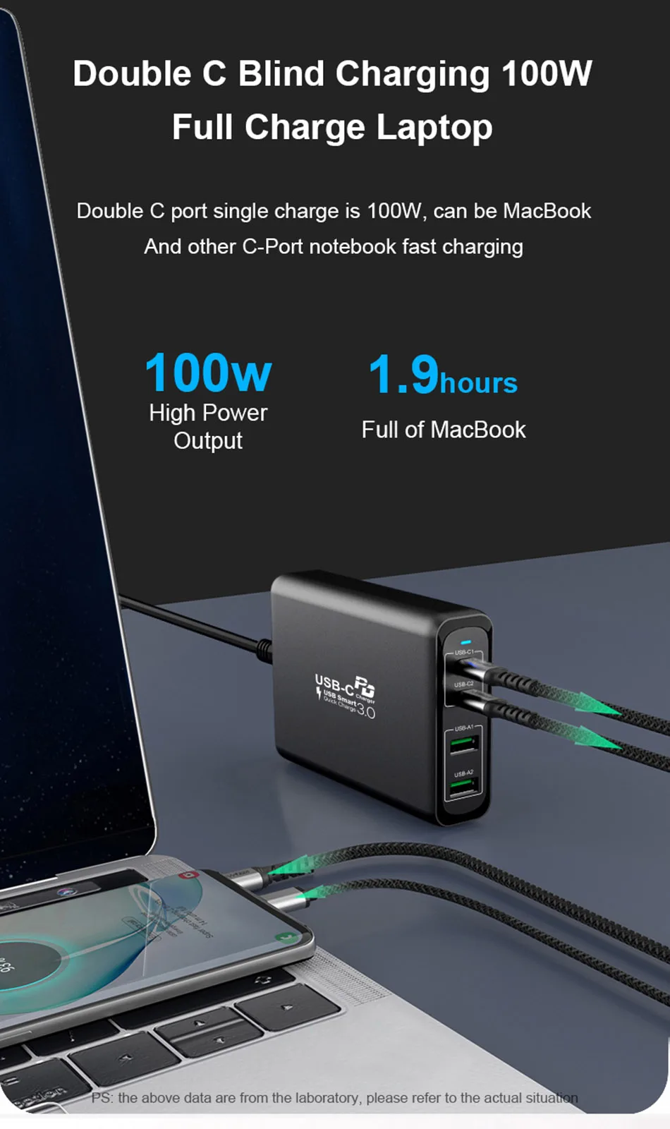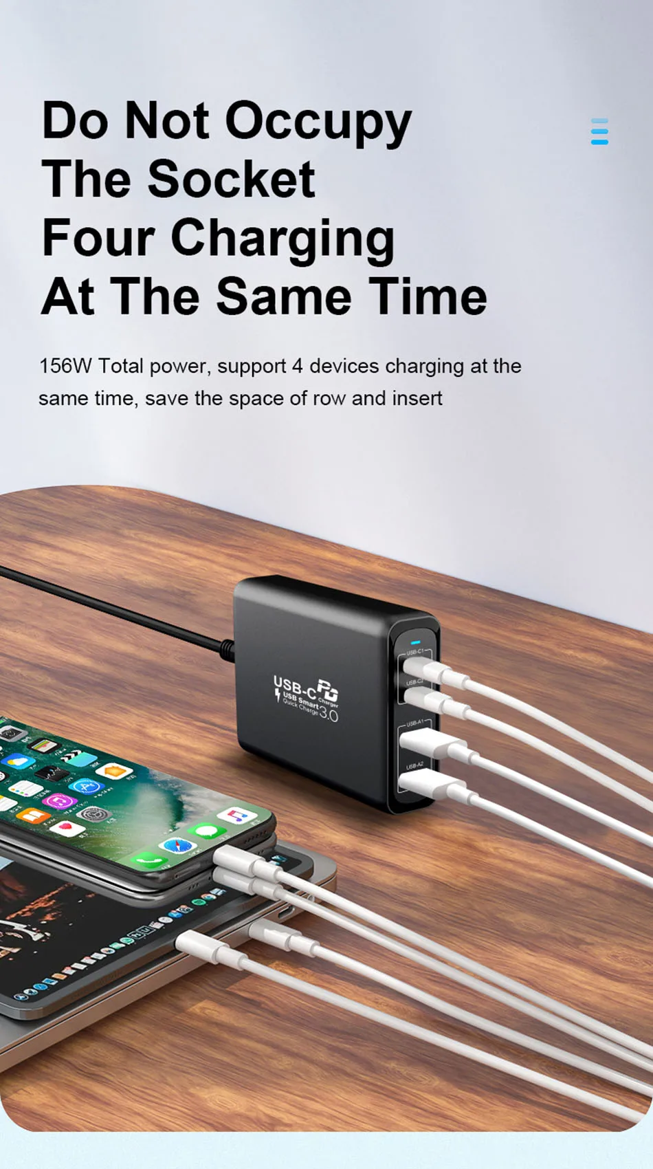 TQUQ 4-портовый 156W Ган быстрое зарядное устройство USB C к USB адаптеру питания, PD 100W PPS 65 Вт 45 Вт QC4.0 для MacBook iPhone Samsung Dell ноутбук Xiaomi