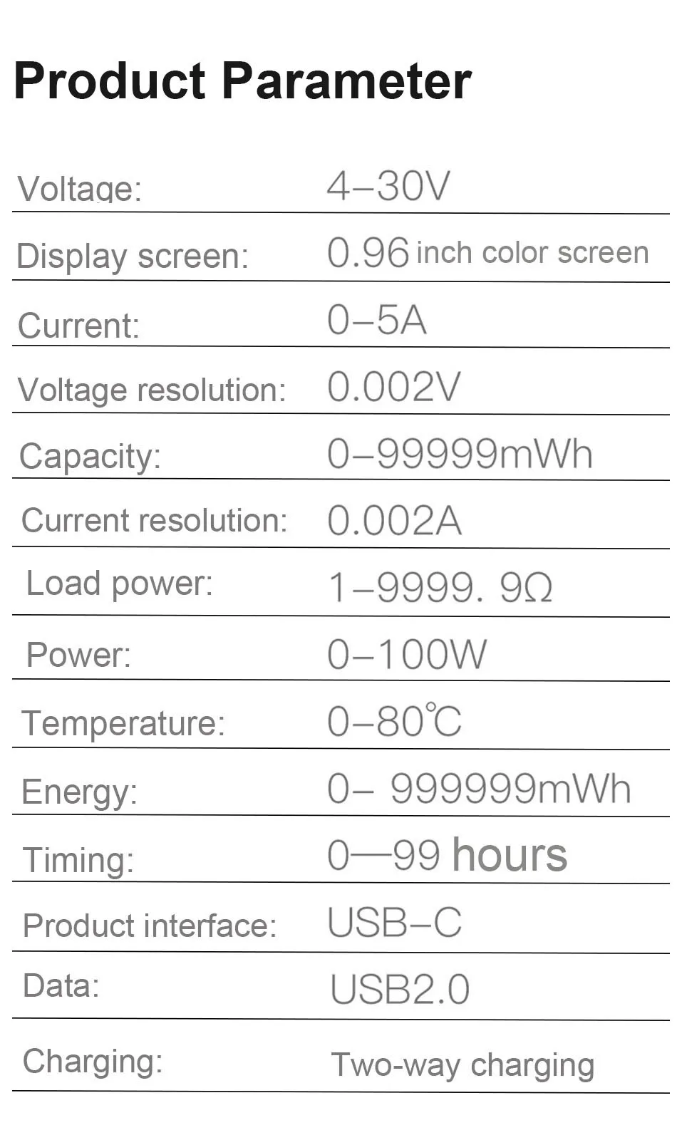 Инструкции: 1: один клик один раз, чтобы изменить страницу отображения 2: быстро дважды нажмите кнопку, чтобы повернуть страницу дисплея 3: Нажмите кнопку в течение 3 секунд, чтобы очистить все сохраненные данные 4: индикатор направления потока зарядки: цвет стрелки и скорость прокрутки изменяются с размером тока, порядок тока от маленького до Большой: зеленый, желтый, оранжевый, красный, чем больше ток, тем быстрее скорость прокрутки, и направление потока не отображается, когда нет Ток 5: метод калибровки тока и напряжения: Необходимо использовать Стандартное напряжение 5,000 в. После нажатия кнопки и включения, кнопка может быть выпущена, когда заводская настройка отображается на экране, и продукт будет автоматически откалиброван. Ps: продукт не может быть подключен к любому оборудованию во время калибровки