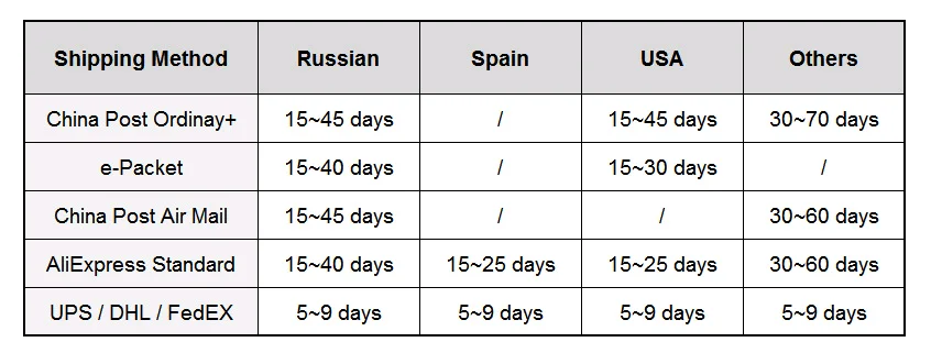 Для 80% стран, когда ваш заказ превышает 120 долларов США, мы отправляем его черезЭкспресс-доставкаТакие как DHL