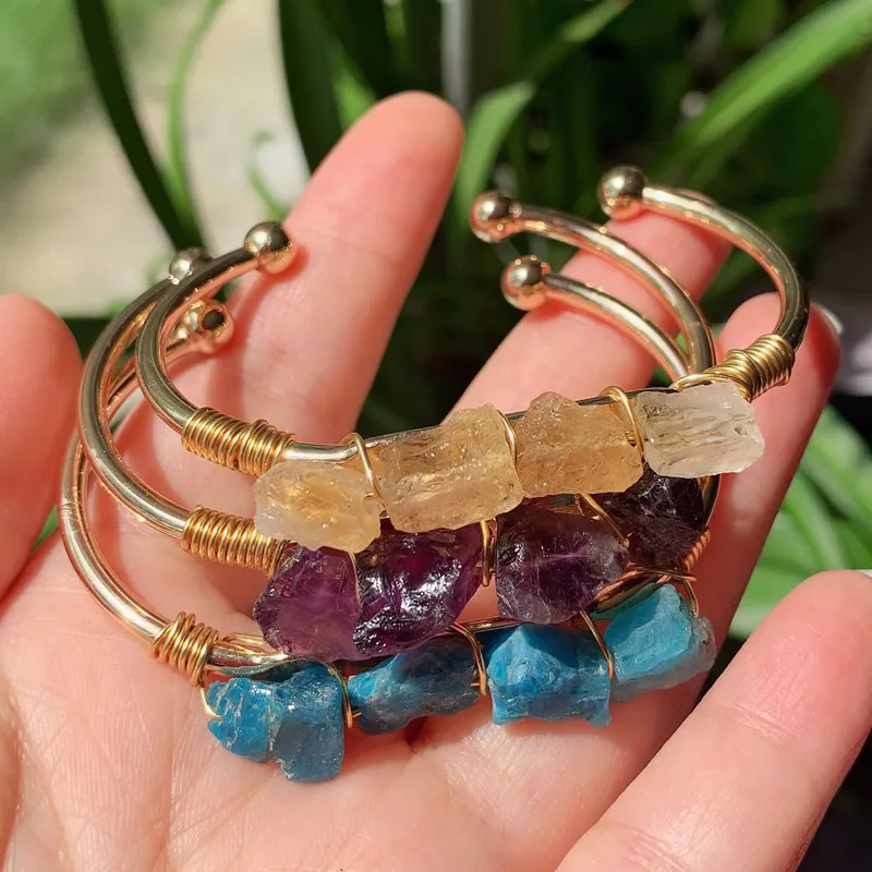 Целебные ювелирные изделия натуральный кварцевый камень браслет манжета маленький самородок аметисты цитрин кианиты синий браслет из желтого кристалла для женщин