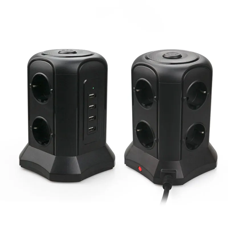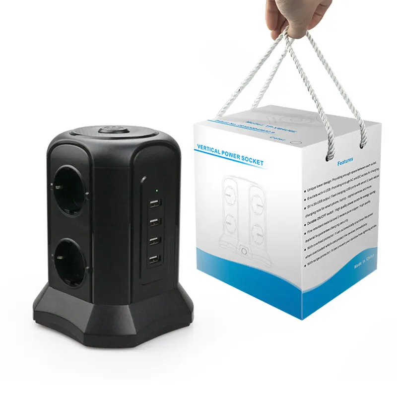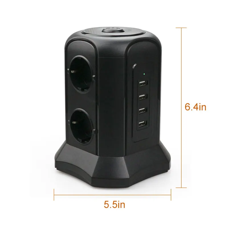Вертикальная полоса с 6 гнездами. 6 штепсельных вилок распределены на трех сторонах вертикальной полосы башни. Вертикальная штепсельная лента имеет достаточно места для каждой вилки. При использовании этой штепсельной вилки не будут перекрываться.